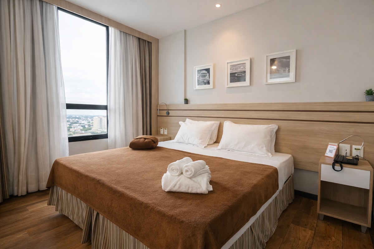 Moderno apartamento en Intercity Manaus, perfecto para ocio o negocios. Tiene capacidad para 3 personas cómodamente, con wifi, minibar y ropa de cama. Vistas panorámicas a la ciudad y acceso a la piscina, al gimnasio y al restaurante. Ubicación estratégica: cerca de Manauara Shopping, distrito industrial y centro de la ciudad. Ofrecemos limpieza gratuita cada 5 días. ¡Ven y vive la experiencia de alojarte como residente, con una estructura de hotel!