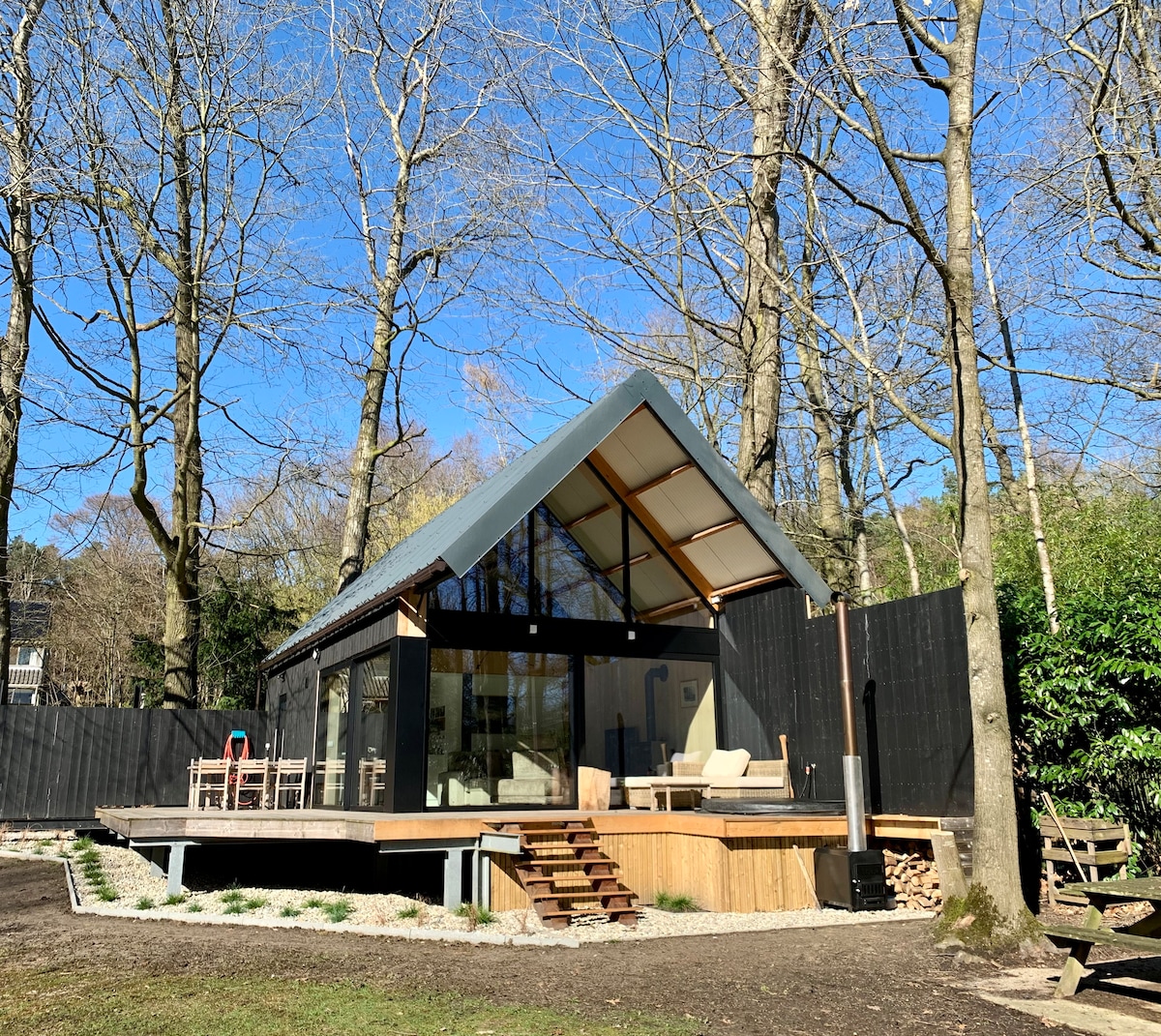 Moderna casa del árbol privada en granja de las Highlands