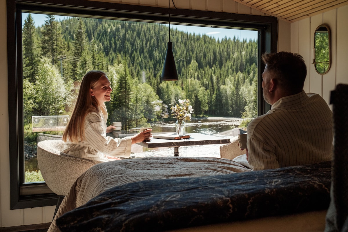 La suite Mirror ofrece una estancia cerca de la naturaleza y con unas vistas increíbles. Suite porque contiene todo lo necesario para una buena estancia, y más que eso. La suite de espejos tiene función de espejo en dos paredes. Puedes mirar hacia fuera pero nadie puede ver dentro. Ni siquiera los ciervos, pájaros, zorros o alces deambulan. Vives en el centro, no muy lejos de las tiendas y la gente, pero todo para ti. Precioso baño con ducha y agua caliente. Sauna de leña privada en una casa cercana. El ambiente no puede ser más que bueno.