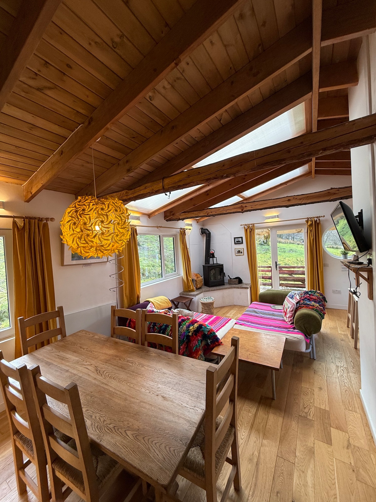 Nuestra cabaña glamping con energía solar tiene unas vistas magníficas desde Loch Long hasta Loch Goil, sin luces de la calle que interrumpan los impresionantes cielos nocturnos. Disfruta del acceso a los lagos para nadar, hacer kayak o surf de remo. Hay numerosos lugares cerca para dar un paseo a pie o en bicicleta y luego puedes regresar a este refugio perfecto para parejas o familias pequeñas. Pueden dormir cinco, pero no es adecuado para cinco adultos. También hay talleres de yoga/meditación, floristería y arte disponibles. ¡No te pierdas a Sheila, nuestra cierva residente y nuestras gallinas rescatadas!