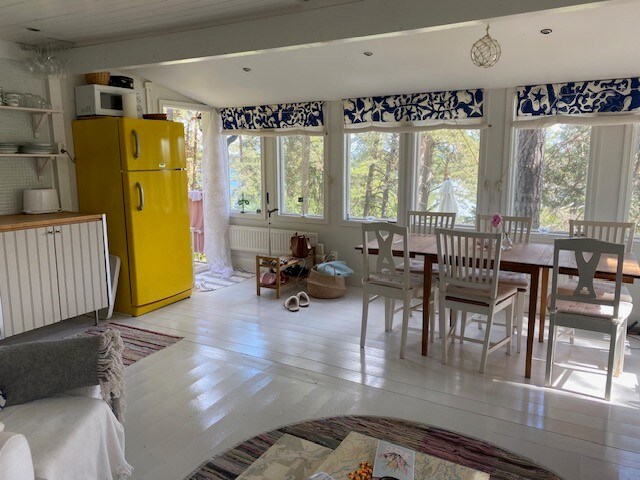 ¡Para los amantes de la naturaleza y del estilo "sencillo" y rústico! Construida en 1927, es propiedad de la cuarta generación. ¡Playa privada, muelle para barco / pesca / baño, parcela parcialmente salvaje con bosque y bayas! (aprox. 60x60m). Zona tranquila y verde de Norrnäs, cerca de Rindö y Vaxholm. Vista de los barcos que pasan Planta baja + ático = 65 m², 5 camas (+4 camas de invitados - 200 SEK/persona por noche), balcón - 30 m². A solo 40 km de la estación central de Estocolmo (autobús 3-4 veces al día en ambas direcciones). Granja de caballos a 4 km. Centro de Hemmesta a 10 minutos en coche.