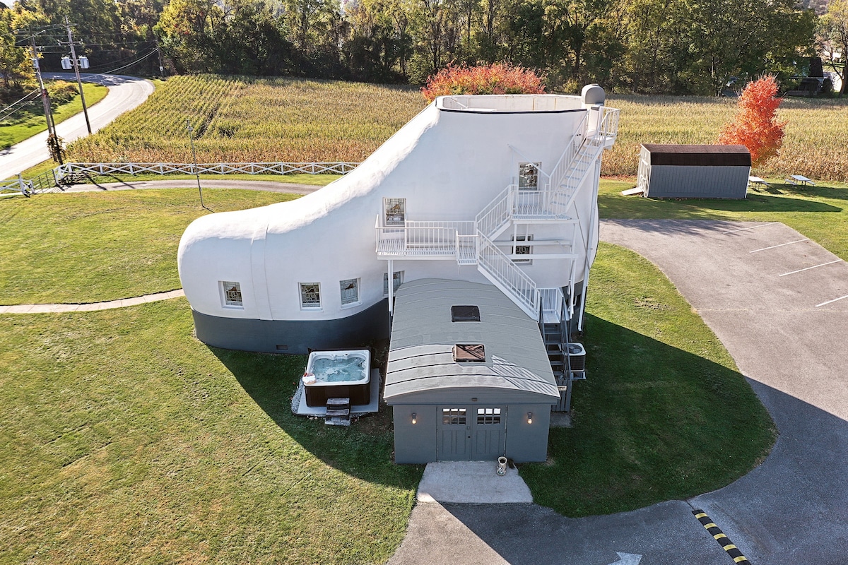 👞 Te damos la bienvenida a The Haines Shoe House 👞 Destacado en HGTV y The Amazing Race, nuestro increíblemente único Airbnb está ubicado a lo largo de la histórica Lincoln Highway y se encuentra junto a los hermosos campos agrícolas de Pensilvania. Recientemente designada como un monumento histórico, hemos diseñado meticulosamente la casa del zapato para nuestros huéspedes con un fogón al aire libre de leña, parrilla de carbón, comedor al aire libre y jacuzzi.