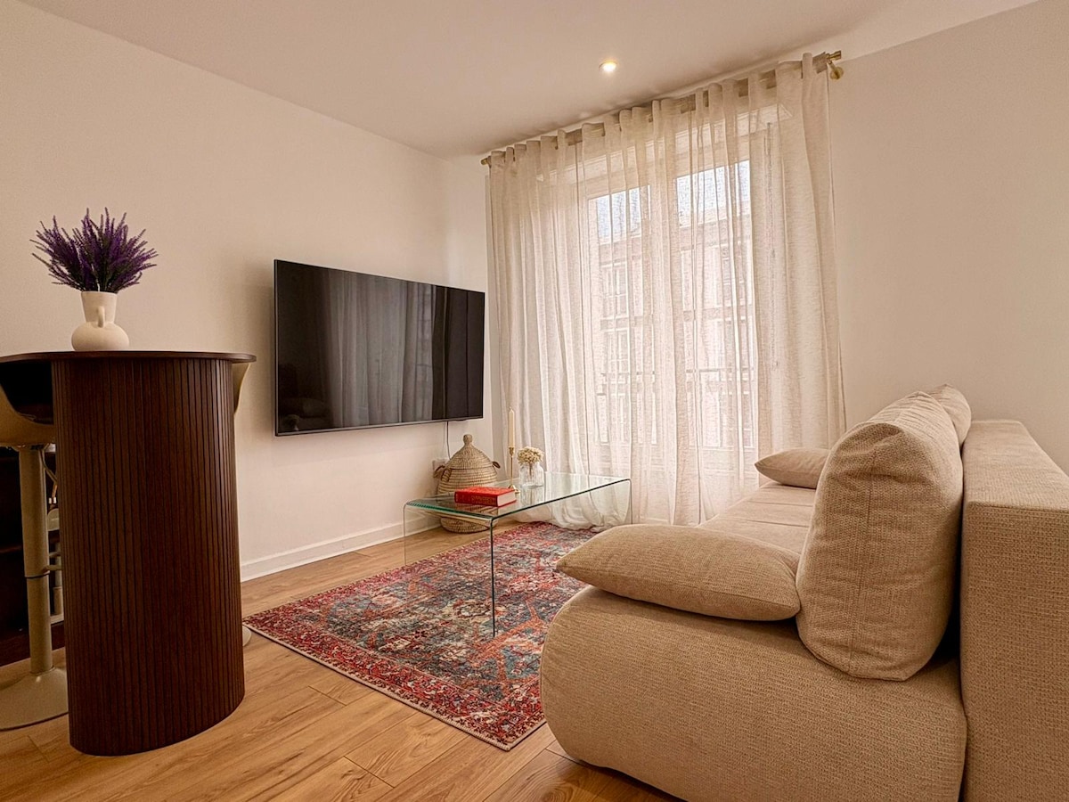 La Suite Pan de jengibre Dormitorio 1: cama de 160 x 200, ropa de cama de algodón orgánico Dormitorio 2: cama de 160 x 200 ropa de cama de algodón orgánico Sala de estar: sofá cama convertible de láminas de alta gama 140 x 195 cm Ropa de cama de algodón orgánico Cocina equipada, vajilla, cafetera expreso -Completamente reformado - Puerta blindada - Aire acondicionado - Ascensor - Baño y ducha -Vista fantástica - Doble orientación - WiFi - Smart TV - Persiana eléctrica