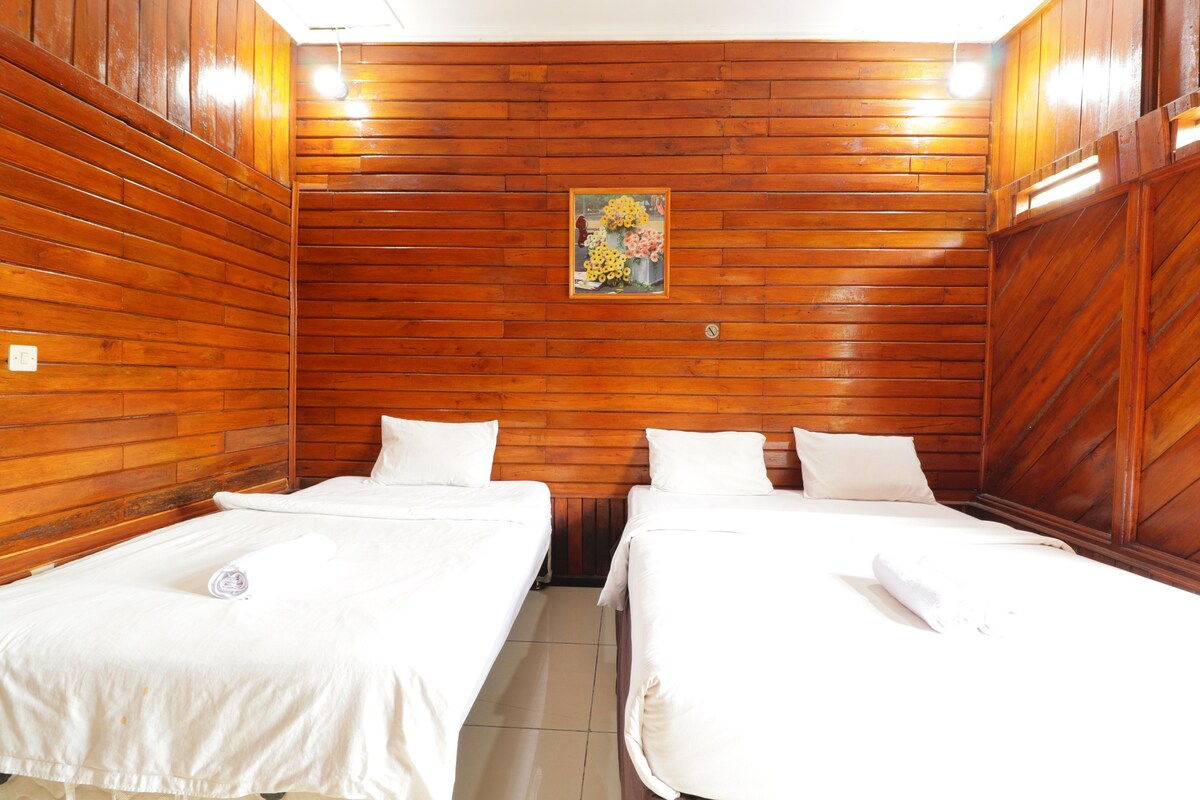 Acogedora y sencilla, nuestra habitación doble estándar en Grand Panorama Lembang ofrece dos cómodas camas individuales, ideal para amigos o compañeros de viaje. Rodeada por el aire fresco de la montaña de Lembang y las tranquilas vistas al jardín, la habitación cuenta con comodidades esenciales como baño privado, TV y artículos de tocador perfectos para una estancia tranquila y económica cerca de las atracciones locales.