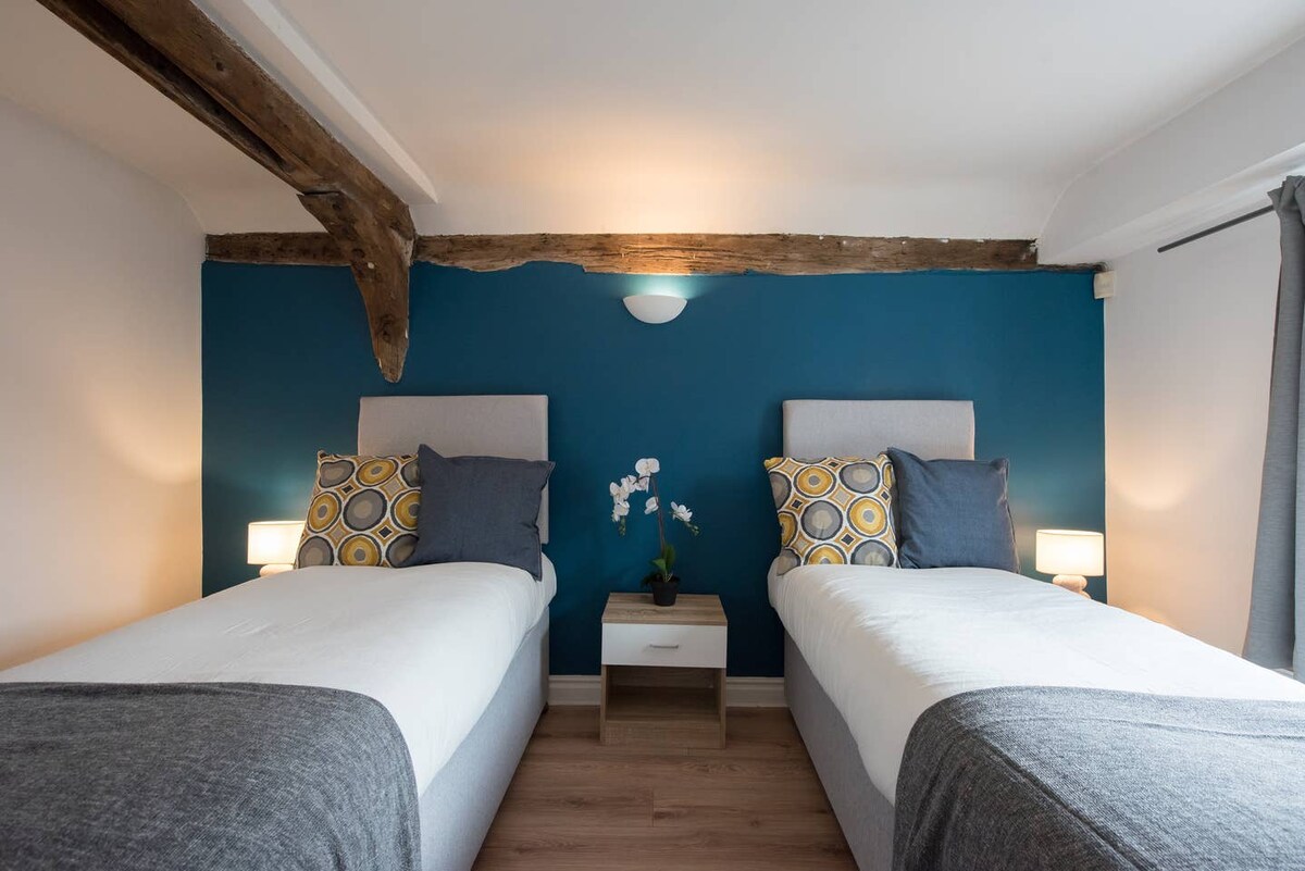 Este apartamento dúplex del siglo XVI bellamente reformado se encuentra en el corazón de la ciudad de Colchester y a poca distancia a pie de tiendas, restaurantes y sitios históricos. Este hermoso apartamento dúplex se distribuye en dos plantas y ofrece una amplia y acogedora sala de estar. Situado en la vía principal del centro de la ciudad, a 2 minutos a pie del castillo de Colchester y High Street. Aviso: la música se reproduce en el bar de abajo los viernes y sábados por la noche hasta las 12:00 h. no se permite cocinar fuertes