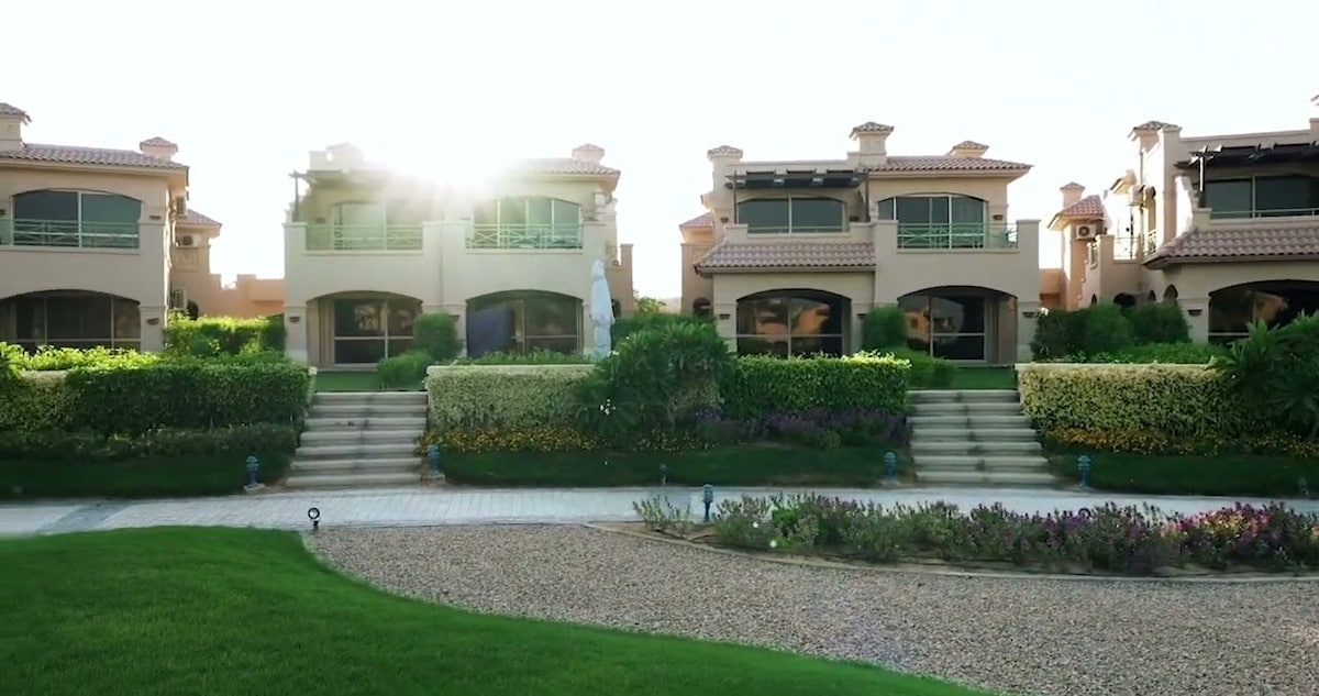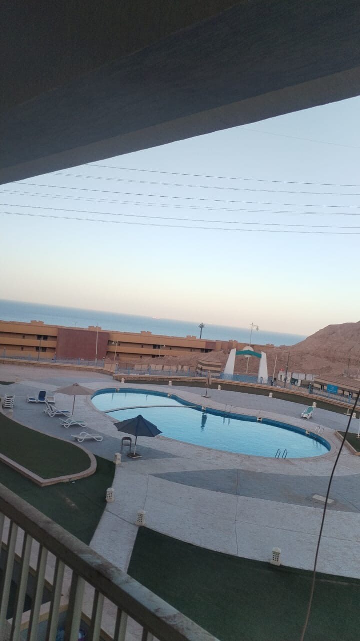 Nuestro chalet se encuentra en el resort de playa de Coral Sea. El chalet está a 5 minutos caminando de la playa. Relájate en la playa y disfruta de un paseo por el único muelle de 1 km de largo donde puedes bucear o pescar. El centro vacacional ofrece 2 piscinas y parque acuático para niños. La cocina cuenta con todos los servicios necesarios. Aire acondicionado central, 3 dormitorios y 2 baños completos y tiene capacidad para 6 personas. Hay un supermercado en la entrada del resort. El resort está cerca de la autopista New Galala