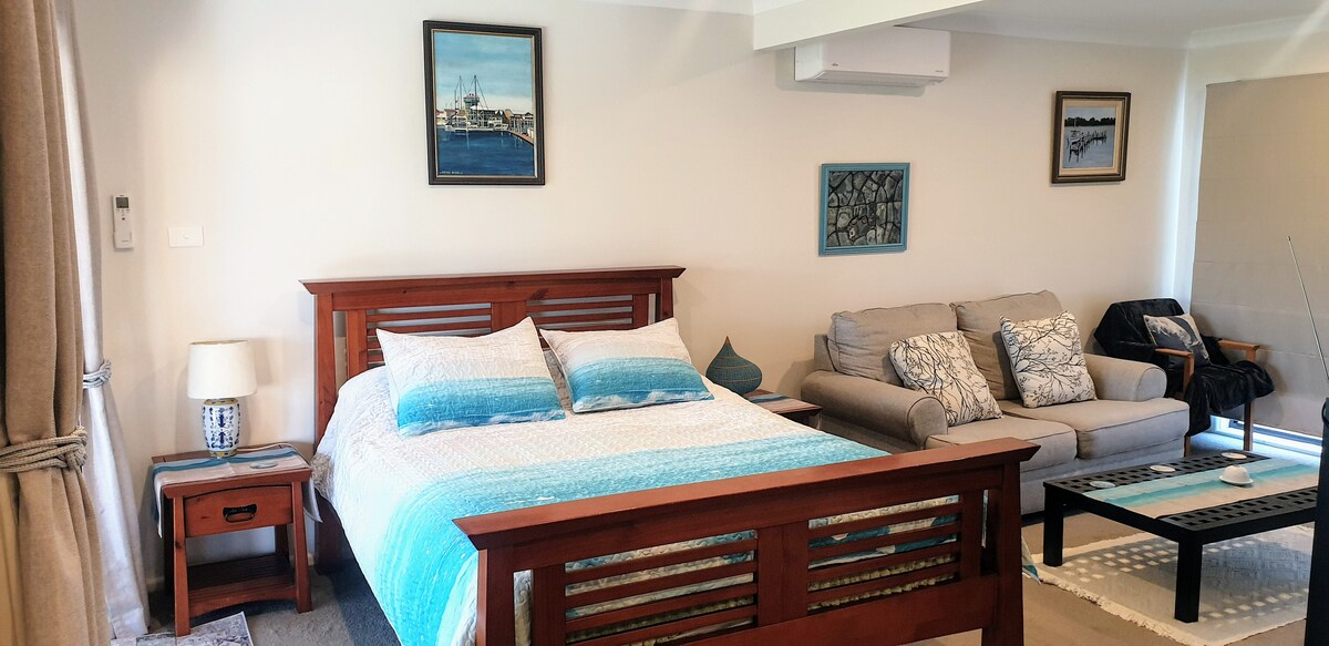 Relájate en este espacio tranquilo, elegante y asequible, a tiro de piedra de la apartada playa de Garden Bay. Un suave paseo tranquilo hasta la rampa del barco Mosquito Bay y el Café 366, o dirígete en la dirección opuesta sobre la colina hasta la playa de surf de la bahía de Malua. A 10 minutos en coche al norte de Batemans Bay o al sur de Broulee. La cabaña Garden Bay Beach es una unidad independiente en la planta baja con todas las comodidades y está construida para parejas, pero puede alojar a un niño pequeño como extra. Excelente retiro romántico.