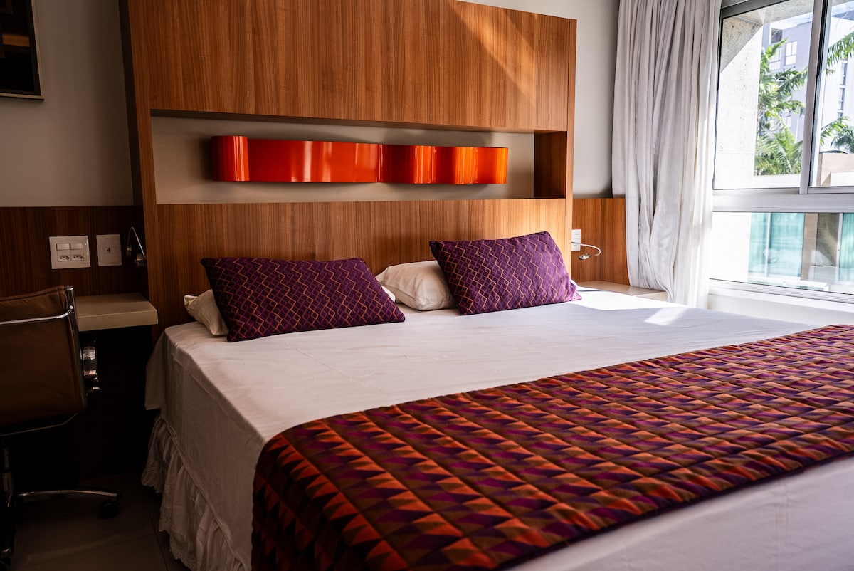 Apartamento de lujo en DF Plaza, en Águas Claras, ideal para parejas o ejecutivos. Cuenta con cama tamaño queen, sofá cama, aire acondicionado, wifi y cocina equipada. Decoración moderna y funcional. Ubicado dentro del centro comercial, con acceso a restaurantes, supermercado, farmacia y gimnasio. El edificio ofrece piscina, lavandería, aparcamiento gratuito y conserje las 24 horas. Comodidad y practicidad en una ubicación estupenda.