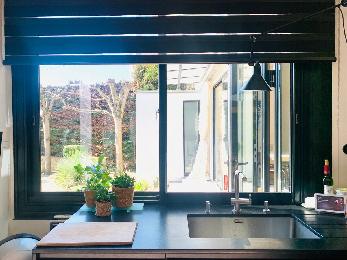Estaremos encantados de recibirle en esta casa llena de encanto con 2 dormitorios, aire acondicionado y bonita terraza. Ambiente acogedor y aparcamiento. Ideal para sus estancias en familia, con amigos o por trabajo. Barrio residencial cerca de todos los servicios, restaurantes y supermercados. Líneas de tranvía y autobús. Acceso rápido a la carretera de circunvalación y al aeropuerto (10 min). Cuenca de Arcachon y playas a 35 min Castillos y viñedos de Burdeos para descubrir en los alrededores. Lea bien el reglamento interno.