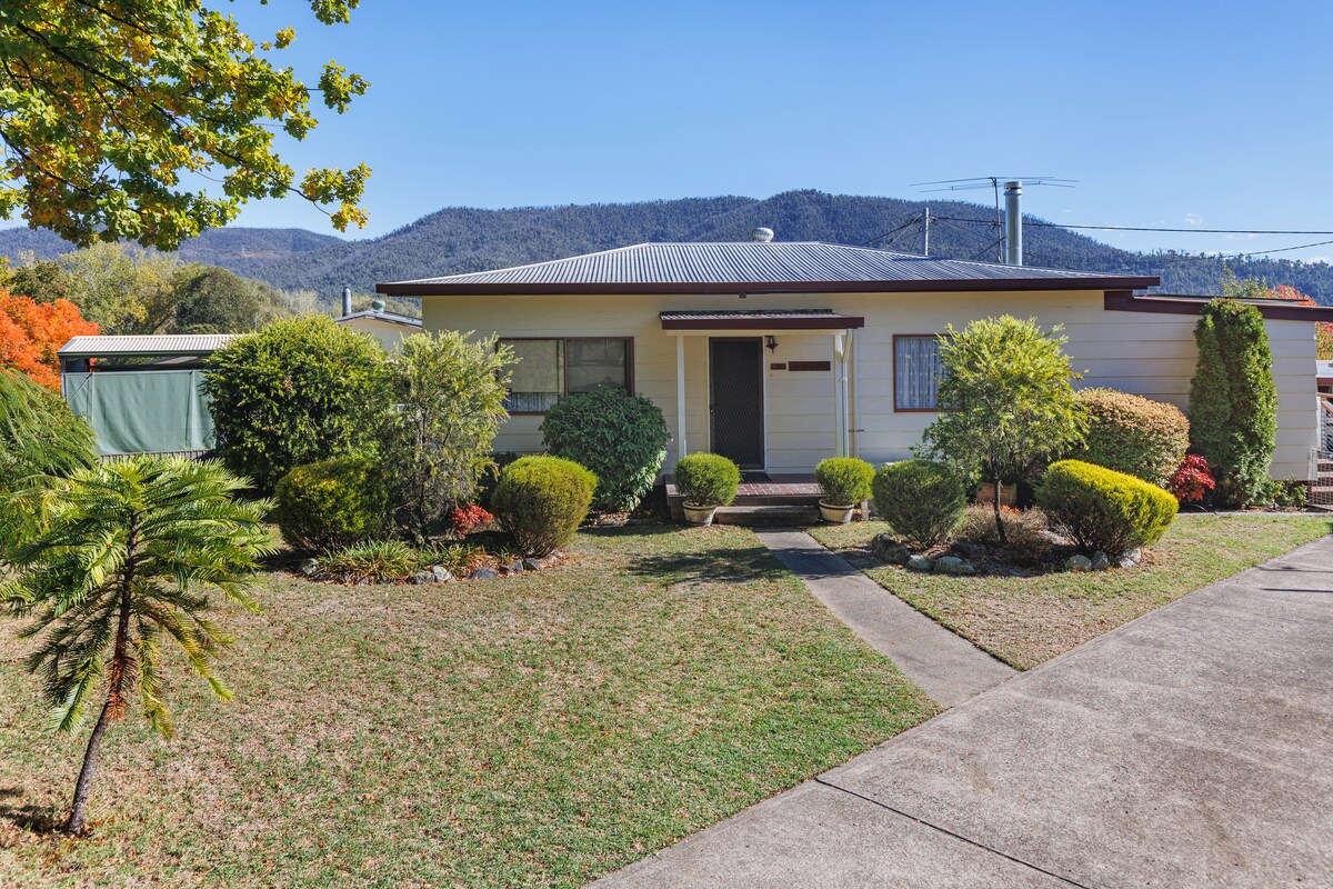 Una original cabaña de trabajadores de Snowy convertida en un refugio superestiloso con ambiente de caza y pesca. ¡Imagina tonos cambiantes, pino y pizarra, y rincones acogedores para relajarte! Nuestra cocina completa tiene todo lo que necesitas para una estancia corta o larga (desde una cafetera Nespresso para empezar el día hasta copas de pinot para disfrutar junto al fuego por la noche), un lugar en la terraza para observar la vida silvestre mientras haces una barbacoa, mucho espacio para estacionar tu barco y wifi Starlink superrápido. Nos encanta nuestra «casa de montaña» y esperamos que a ti también.