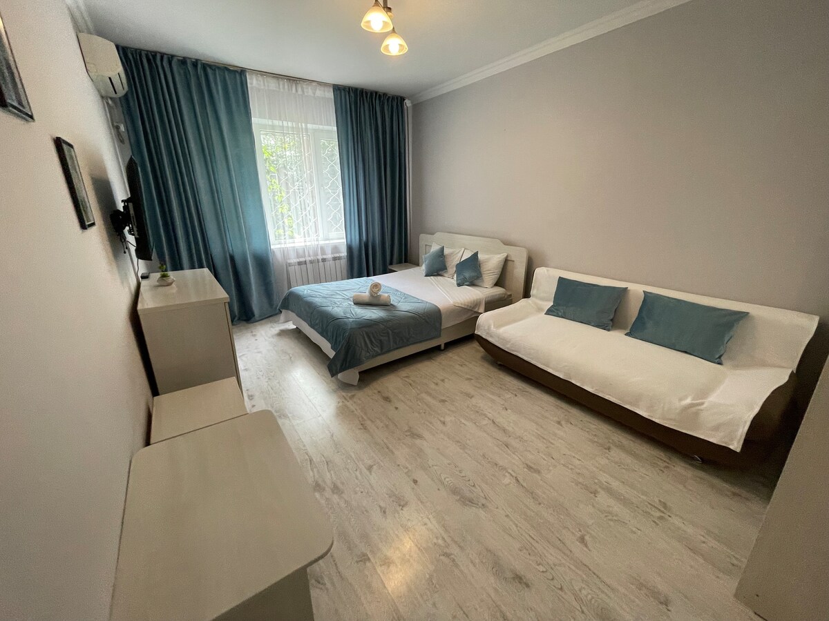 ¡Queridos huéspedes de la ciudad! Si quieres tener una experiencia inolvidable de tu estancia en nuestra ciudad, te ayudaremos con esto y te ofreceremos un elegante y acogedor apartamento de 3 dormitorios en el centro de la ciudad. Muebles del hogar, limpieza perfecta, renovación fresca. Se tienen en cuenta todos tus deseos, desde ropa de cama, platos, toallas y otros detalles nuevos. Podrás sumergirte en la exploración de nuestra ciudad y disfrutar de tu estancia en el restaurante o cafetería más cercana. ¡Te damos la bienvenida a Almaty❤️!