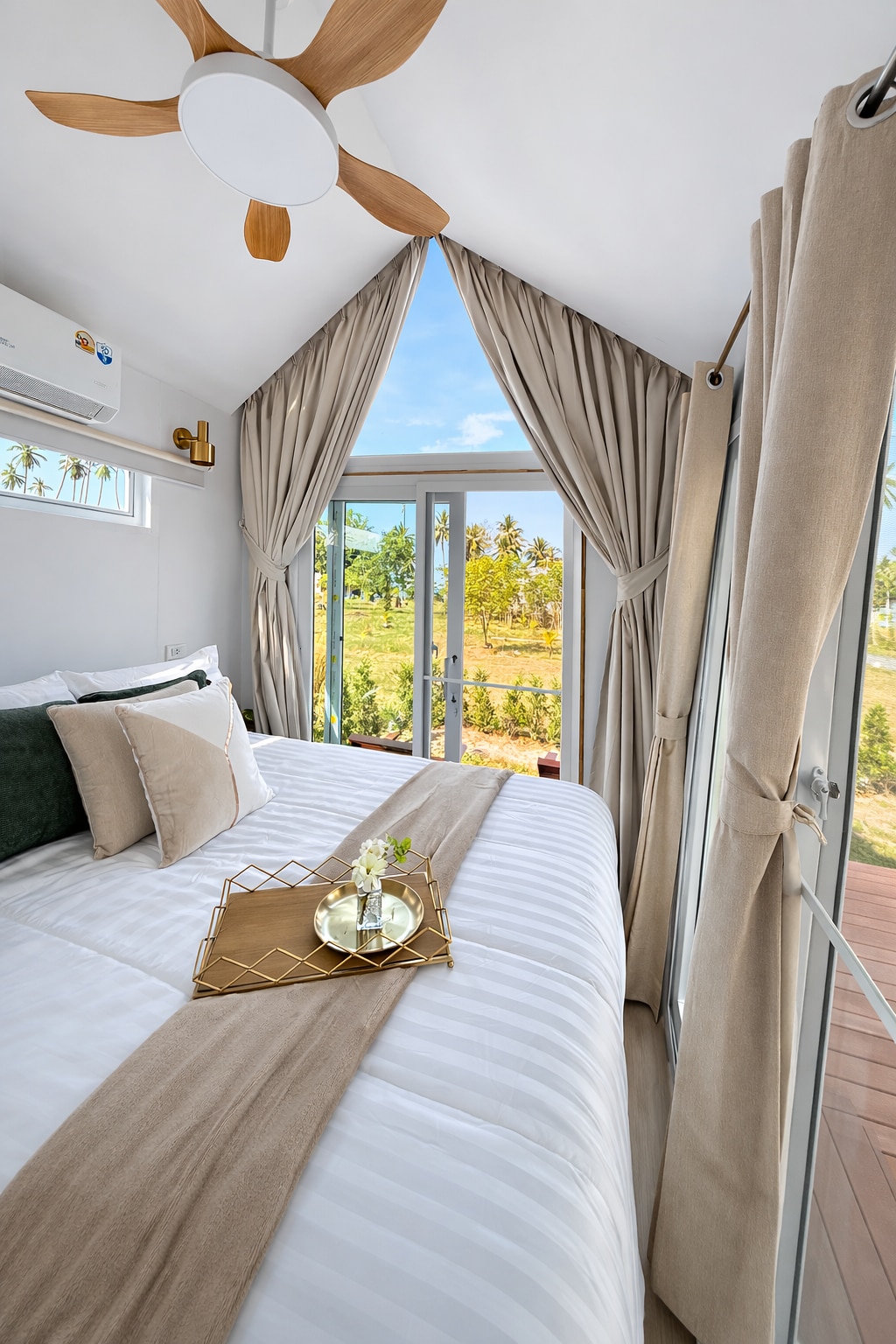 Ubicada en una residencia boutique de solo 6 casas, un lugar tranquilo y escondido en el corazón de Bangrak, la zona más animada cerca del Gran Buda con opciones ilimitadas de restaurantes, bares, cafeterías, mercados locales, minimarts, clínica :). La piscina frente al mar y los kayaks se comparten con las demás casas dentro del centro vacacional. Esta casa está situada en la segunda fila, a 20 metros del mar. El descuento por estancia larga se aplica automáticamente cuando eliges las fechas.