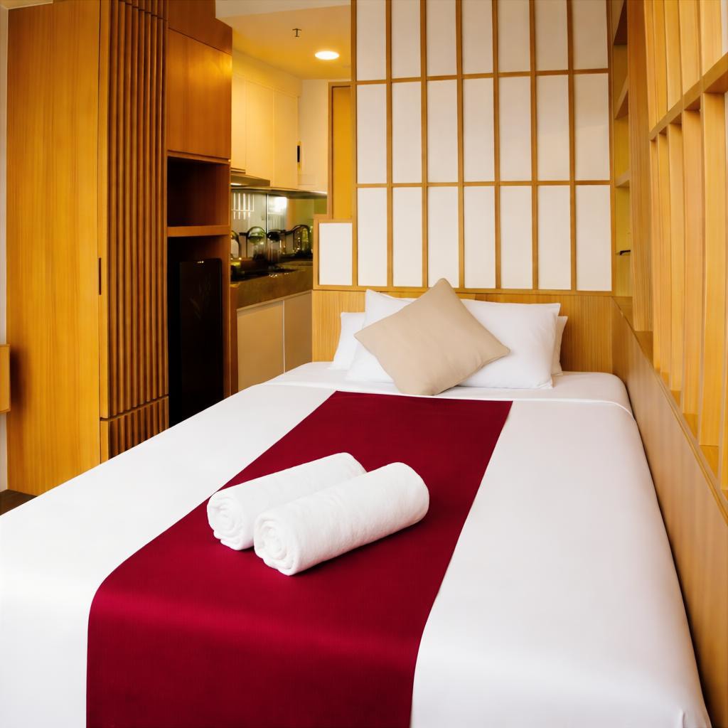Disfruta de una estancia tranquila en este acogedor estudio de inspiración japonesa en PIK 2. Diseñado con toques minimalistas y detalles cálidos, cuenta con una cómoda cama de 120 cm, aire acondicionado, cocina totalmente equipada, TV de pantalla plana y conexión wifi gratuita. Situado cerca de restaurantes y zonas de restauración, con seguridad las 24 horas, acceso al ascensor y servicio de traslado gratuito para tu comodidad. • A 10 minutos de Aloha Beach • A 6 millas del aeropuerto de Soekarno-Hatta Perfecto para unas vacaciones relajantes o un viaje de negocios.