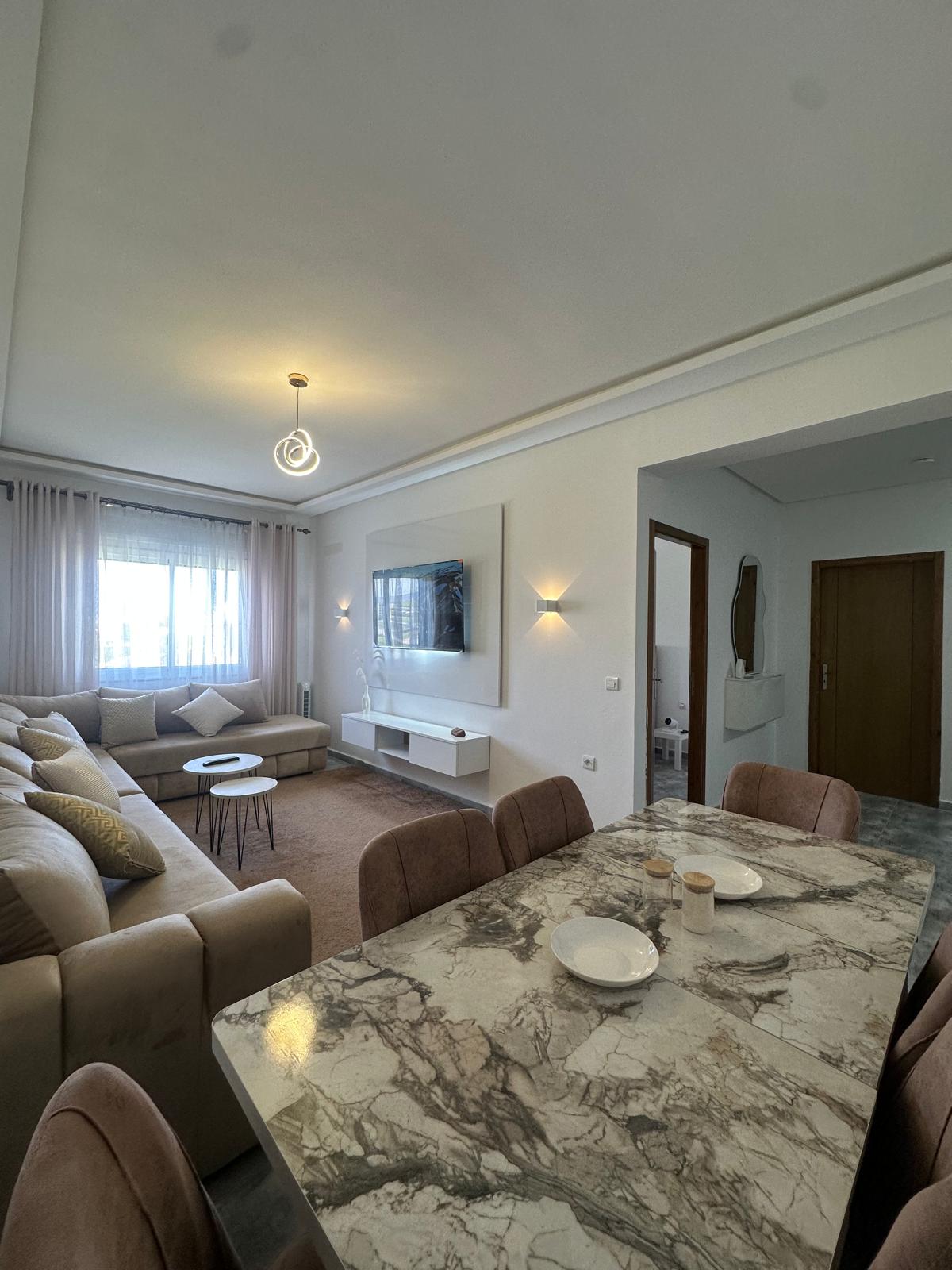 Bienvenue dans cet appartement de luxe situé à Tanger. Design moderne, équipements haut de gamme et emplacement privilégié près des attractions principales. Profitez d'une expérience exceptionnelle ! Réservez dès maintenant. Services supplémentaires disponibles. Contactez-nous !