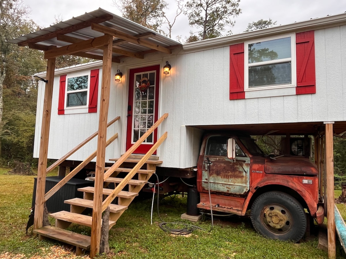 This is a one of a kind, tiny home built on a 1970 Chevrolet C50 farm truck! The truck is on a spacious private lot on the Tangipahoa River conveniently located 6 miles from Ponchatoula & 45 miles from New Orleans. The truck home is fully stocked for a perfect getaway including a kitchen, bathroom, queen bed in the bedroom, couch sleeper, AC/heat, an outside gazebo, and WIFI for remote work. Enjoy fishing, boating, bird watching, evening fires, and nature at our peaceful water front home.