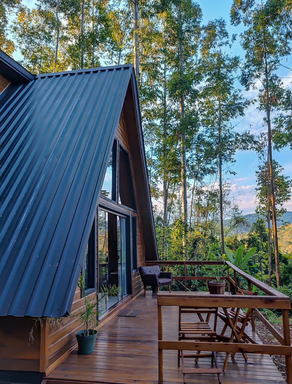 Relájate en este increíble lugar con un espacio tranquilo y elegante. Un refugio sereno que combina armoniosamente el encanto de lo rústico a lo contemporáneo. Ubicada en Lomba Grande Novo Hamburgo, la cabaña ofrece una experiencia única, con un confort moderno y una belleza natural rural. Aquí disfrutarás de momentos de tranquilidad y renovación en un refugio que captura la esencia de la serenidad de los campos verdes y colinas con un concepto arquitectónico europeo, un AFrame (estructura en forma de A).