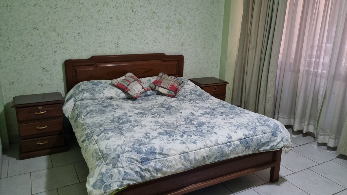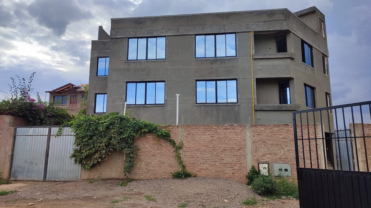 Amplio y acogedor departamento cerca del centro de Cochabamba. Cuenta con 2 dormitorios, 2 baños, cocina equipada, terraza con opción a parrillero y excelente ubicación: a pasos de la terminal de buses, la estación del tren metropolitano y La Cancha. Ideal para familias, parejas o viajeros por trabajo.