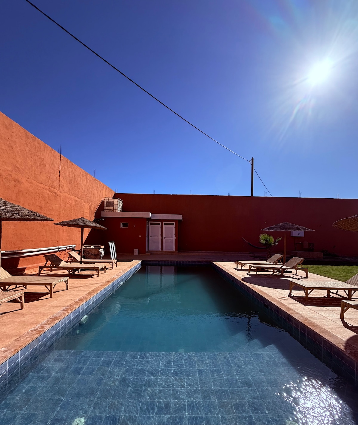Et si vous plongiez dans une bulle de sérénité ? Bienvenue dans la Villa Olivia 🌿 Spacieuse et élégante, cette maison de campagne située à 15 minutes de Taroudant, se déploie sur une surface de 1000 m2. Elle vous offre tout le confort nécessaire pour passer un agréable séjour. Depuis la terrasse, admirez le ciel et ses infinies nuances. Détendez-vous au bord de la piscine, sur les multiples terrasses et patios ombragés. Et profitez d’une magnifique vue sur les montagnes de l’Atlas.