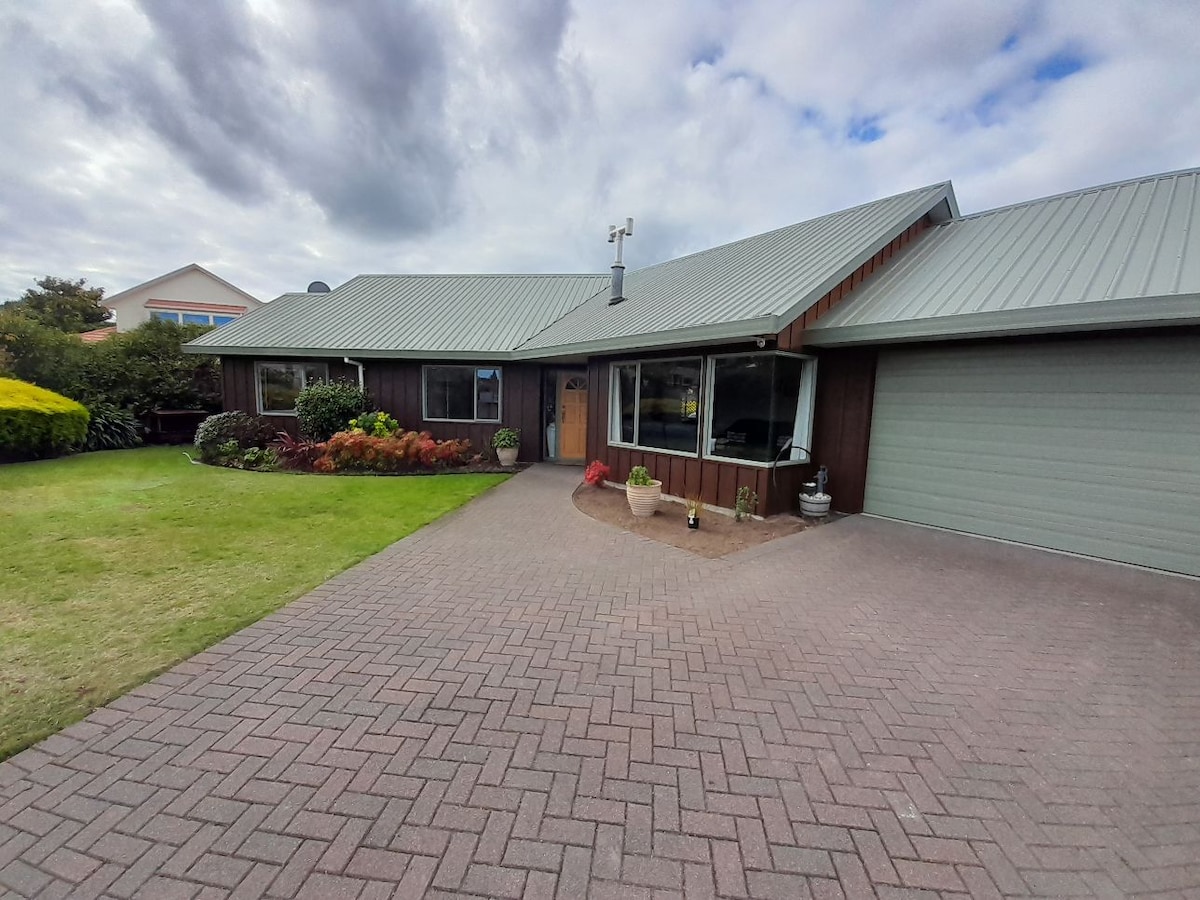 Location!!Location!!Location!! Our house has extensive, close stunning lake views, only 8 minutes (7 kms) drive into Taupo town. A car is necessary as we’re NOT in town! Clean, comfortable, private, peaceful 3 bedroom house surrounded by trees & bush and not in busy suburbia. Sleeps 5. Just across the road from the lake and 2 Bays. New ensuite bathroom and heat pump/air conditioner and new 55” Sony TV. We’ve had many return guests.