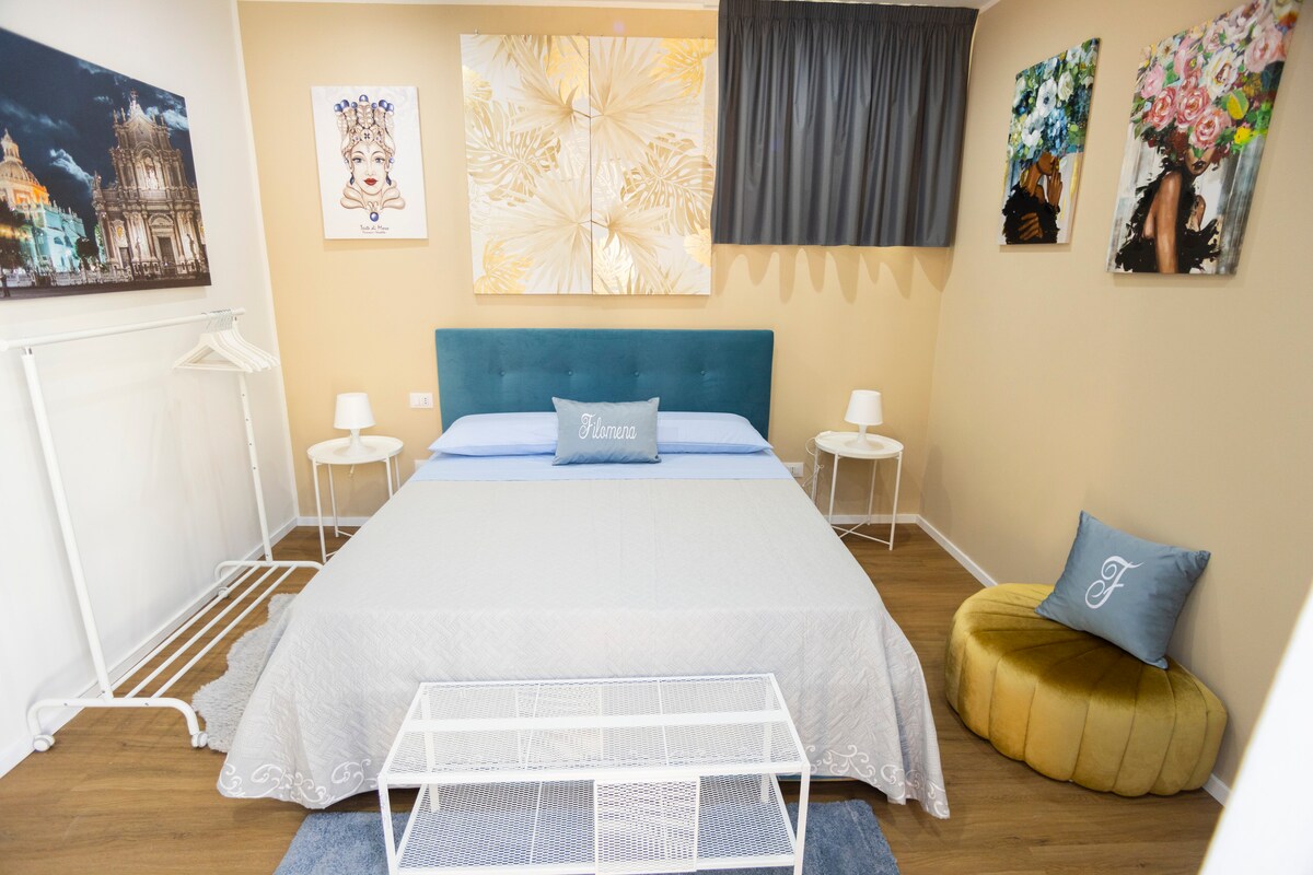 Filomena Domus es un prestigioso ático en el corazón del centro histórico de Catania, situado en el séptimo y último piso de un edificio ubicado en la famosa Via Santa Filomena, equipado con una gran azotea con vistas a los numerosos locales de la vida nocturna de la ciudad, desde la cual los huéspedes podrán disfrutar de una vista exclusiva sobre los tejados de la ciudad MIENTRAS que desde las ventanas del BAÑO se puede observar el ETNA. El ático es ideal para parejas que quieren descubrir la heterogénea, colorida y multiétnica Catania.