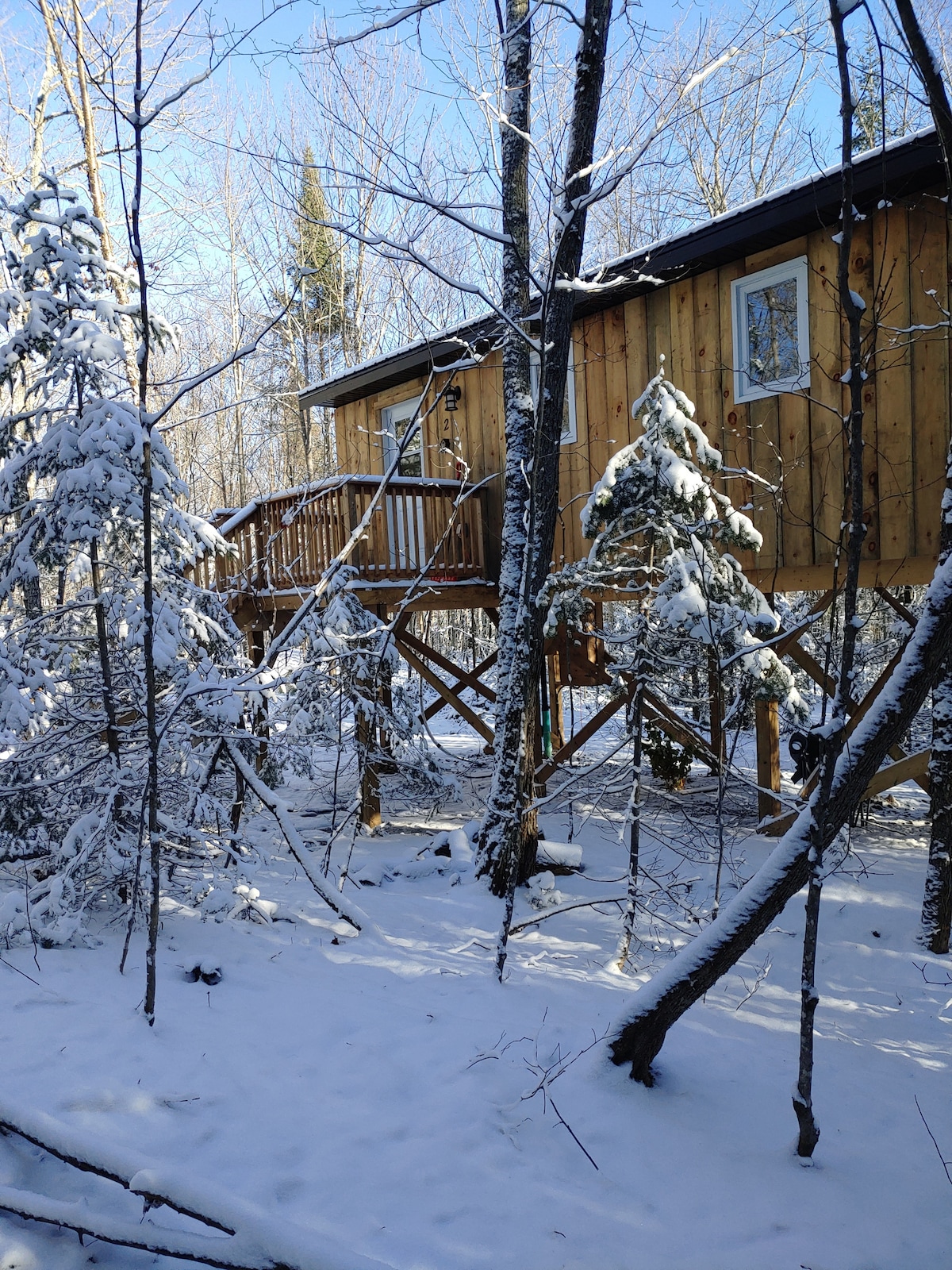 Welcome to Treetop Rentals and Farmstead Nestled high up in the trees and surrounded by hundreds of acres of forest, this is a stay you are certain not to forget. With a 3 piece bathroom, hot water and a full kitchenette, this treetop stay will not ask you to sacrifice any of the comforts you look for. Come and recharge with the calm quiet of nature, warm yourself by a campfire and enjoy a spectacular view of the night sky.