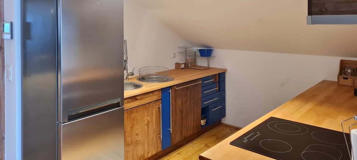 Pequeño apartamento para dos personas. Está situado en la planta baja y tiene una plaza de aparcamiento delante del apartamento. Llegada autónoma con caja de llaves en la puerta de entrada. El apartamento está equipado con zona de cocina con nevera, cocina eléctrica, lavavajillas pequeño y todo lo necesario. Cerca hay un parque y existe la posibilidad de pescar