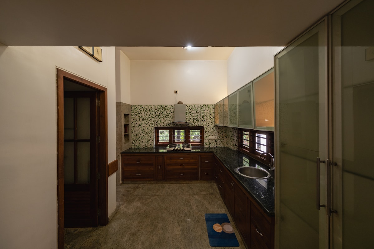 Independent entire Villa, Centrally located, quiet, and peaceful, this retreat is perfect for exploring the city’s vibrant dining, shopping, beaches, and entertainment. A 10-15 min drive to the railway station, South Beach, Lulu Mall, MIMS Hospital, and popular spots like Paragon Restaurant, Focus Mall, Tagore Hall, Maanachira square, and Crown Theater. Clean, tidy, and fresh, with support staff on hand. Base price covers 4 guests; additional guests incur a nominal charge.