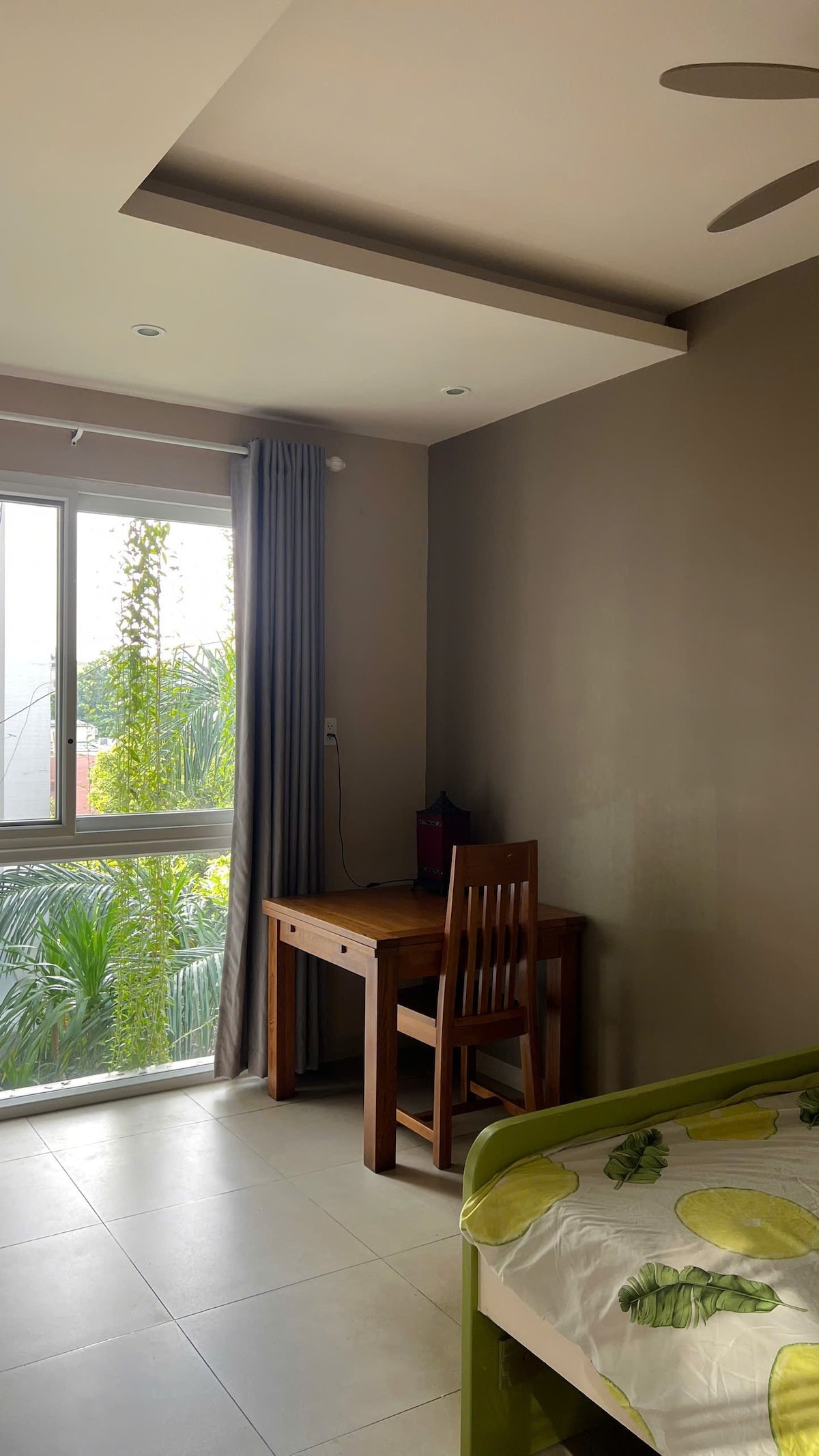 Amplio estudio de 27 m² recientemente renovado en una villa de 5 plantas. Luminoso con una gran ventana y un pequeño balcón para tomar el aire. La habitación está diseñada en un estilo tropical minimalista. Cómoda cama tamaño queen, escritorio, sofá cama y Smart TV con Netflix. Ubicado cerca de la D1, la D10 y el aeropuerto. A poca distancia a pie de auténticos restaurantes, acogedores cafés, bulliciosas calles comerciales y cines como CGV y Mega GS. Perfecto para estancias largas, esta mezcla de comodidad, estilo y conveniencia.