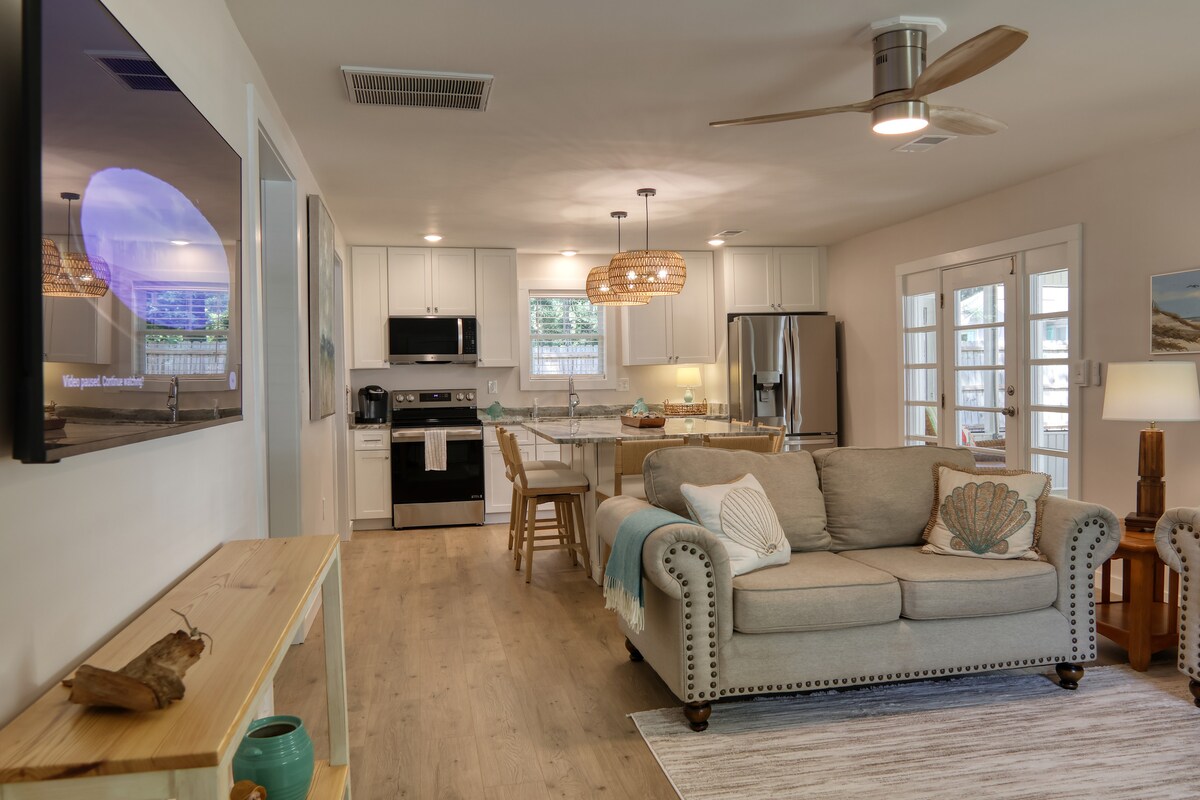 El Salty Barn es pequeño y cualquier cosa menos ordinario. Está a poca distancia a pie del Marshwalk, con muchas opciones gastronómicas y mariscos frescos. El cómodo sofá se convierte en una cama doble o, si te atreves, puedes subir las escaleras hasta el loft, que tiene un colchón tamaño queen. Relájate en el interior con vistas a la vegetación exterior o acomódate en una silla Adirondack y relájate en el exterior junto a la chimenea. Este es el lugar perfecto para una escapada rápida con mucho que hacer cerca.