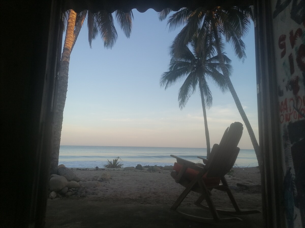 Cabaña frente al mar en Dibulla, la Guajira, ubicada a 1:30 horas de Santa Marta o 50 min de Rioacha, en Dibulla. que cuenta con: Una habitación con hasta para 5 personas de capacidad con baño propio, también tenemos salida directa a la playa, acceso a áreas comunes compartidas como terraza y cocina, Espacio ideal para desconectarse de el turismo convencional, privado y tranquilo, contamos con clases de surf y paseos en la sierra.