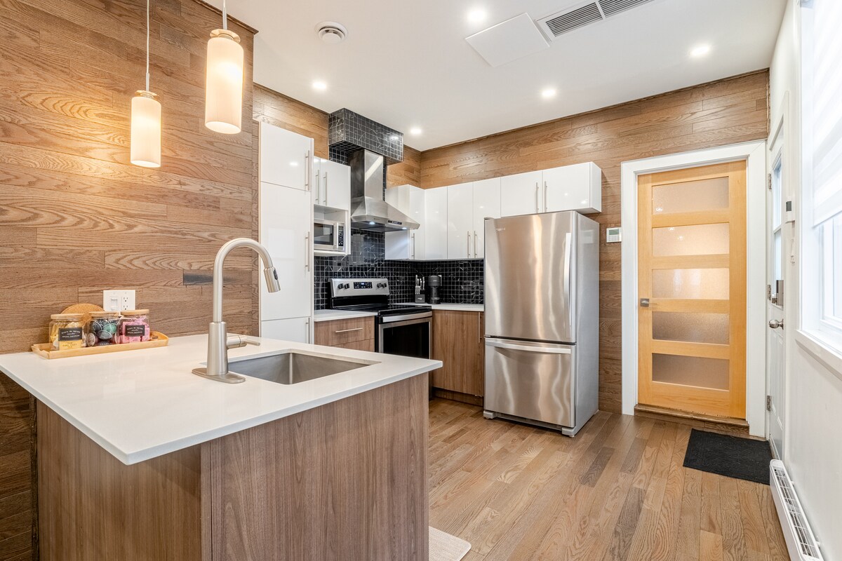 ¡Esta encantadora casa adosada de 1,285 pies cuadrados ha sido completamente renovada para mayor comodidad! Cuenta con 2 dormitorios, 1,5 baños, una cocina totalmente equipada y una lavandería, ¡lo que lo convierte en el lugar perfecto para unas vacaciones en familia! Con el metro a menos de 5 minutos a pie y una plaza de aparcamiento privada ($) justo detrás del alojamiento, esta casa adosada es perfecta para una estancia tranquila y agradable en el corazón de Montreal.