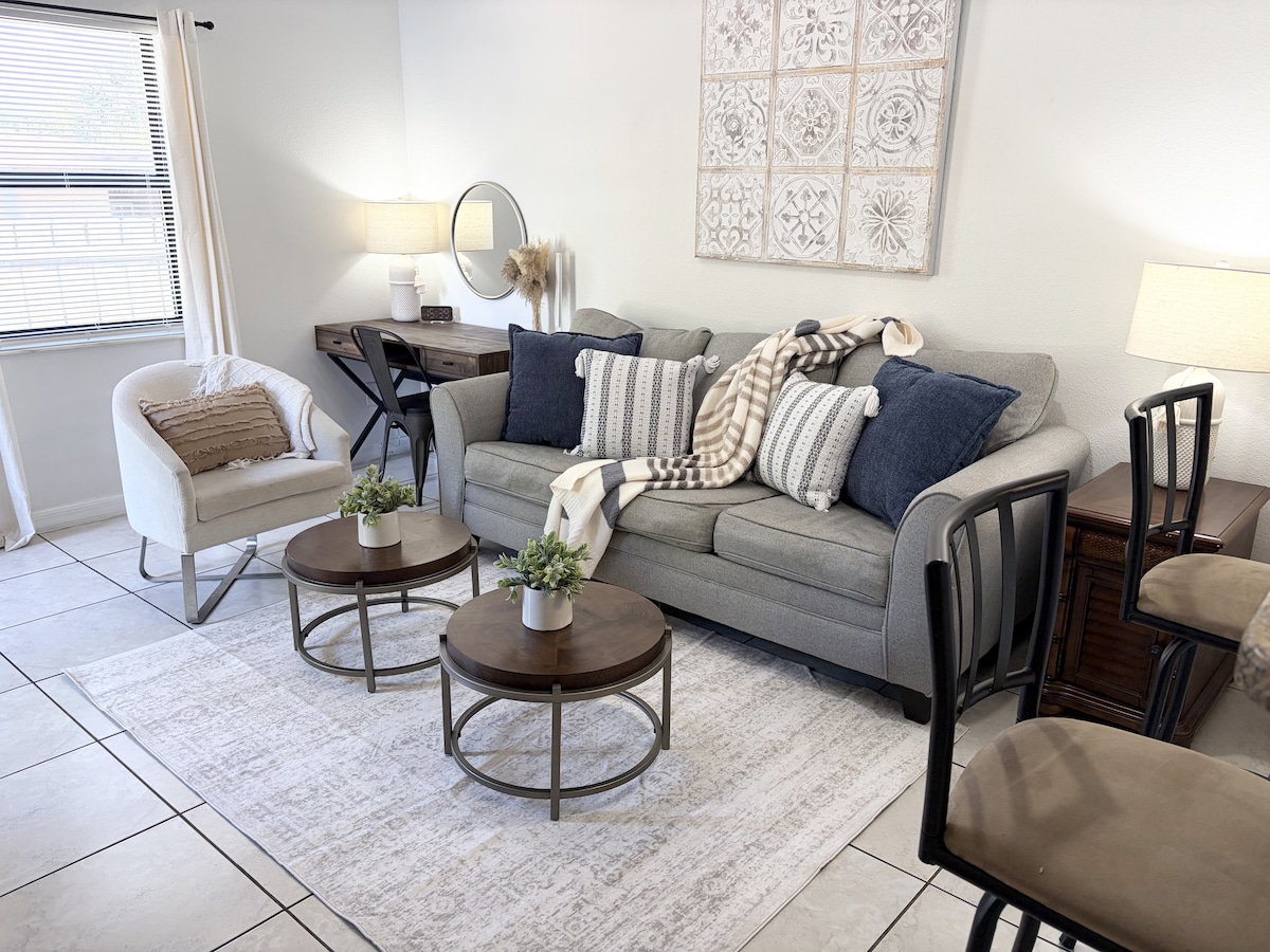 Relájate y desconecta en este alojamiento acogedor y elegante. Este apartamento está a 4 minutos de la gasolinera más cercana, a 5 minutos de la tienda de comestibles más cercana y a 10 minutos de la 484 y la I-75, donde hay 4 gasolineras más con tienda de alimentos y unos 10 restaurantes de comida rápida diferentes, incluidos algunos restaurantes con comedor. Este apartamento también está a solo 10 minutos de un Quick Care (1665 SW Hwy 484 Suite 105, Ocala, FL 34473). Estarás a unos 35 minutos de Rainbow Springs, a 29 minutos de The Canyons Zip Line y a 30 minutos de WEC.
