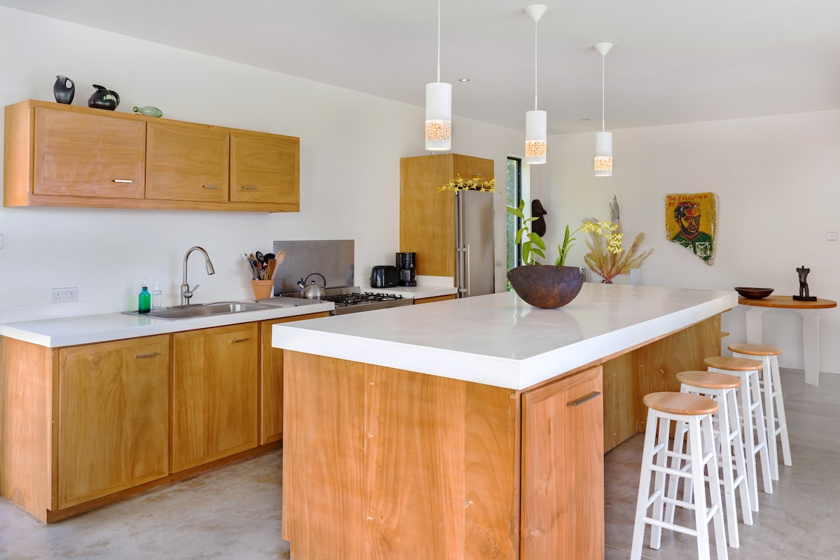 Una cabaña ecológica hecha a mano enclavada en las montañas con vistas al mar, hamacas en la azotea bajo las estrellas y una hospitalidad real. Los huéspedes lo describen como un lugar tranquilo, conmovedor e inolvidable. Si quieres escapar de lo ordinario y vivir más cerca de la naturaleza (¡con fruta fresca y una excelente wifi!), este es tu tipo de lugar.