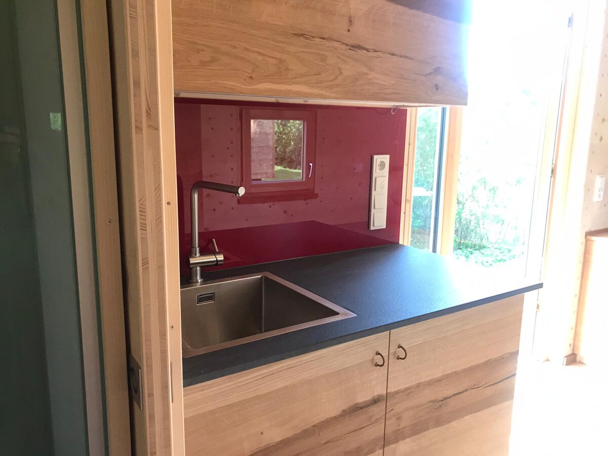 Terminé en 2020 y con ello se hizo realidad uno de mis sueños. He experimentado personalmente la tendencia de «menos es más»: primero debes verlo como una oportunidad. Tiene todo lo necesario para vivir y un precioso jardín. Mi prioridad es que mis huéspedes se sientan como en casa. Mis probadores, un estudiante y una amiga viajera quedaron muy satisfechos. Al igual que en «Un tiempo sabático para todos», estar ahí para una conversación o un deseo que se ha quedado pendiente :-) Melanie