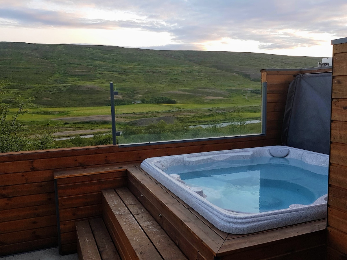 Esta moderna casa rural clásica ofrece impresionantes vistas al Fnjóskadalur. La cabaña es de 50 m2, tendrás una gran terraza y un campo donde podrás recargar tu energía. Relájate en el jacuzzi con agua geotérmica y disfruta de la naturaleza, sintiendo el poder del río Fnjóska fluyendo junto a la cabaña. La zona tiene excelentes rutas de senderismo cerca. También hay cascadas, volcanes activos y lugares de pesca a una corta distancia. Excursión de un día al Parque Nacional de Jökulsárgljúfur, la cascada Dettifoss y Mývatn.
