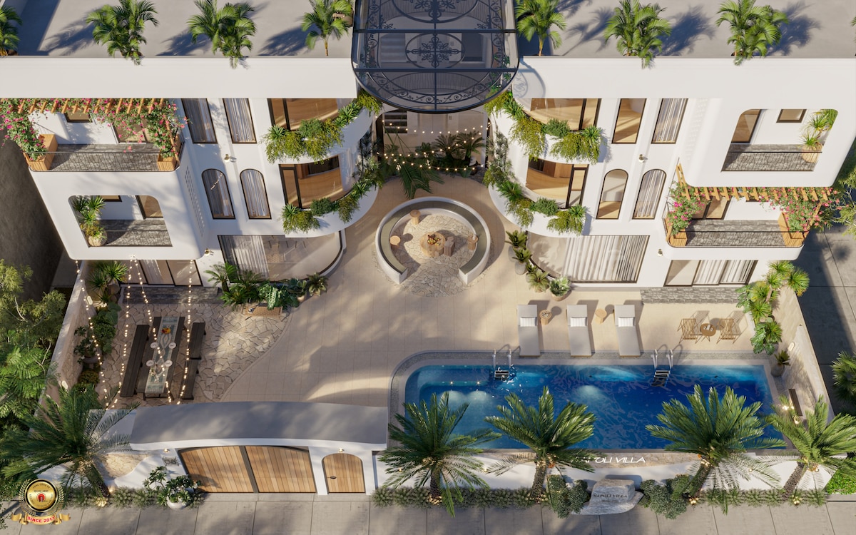 La villa está diseñada de forma lujosa y delicada, ubicada en la zona de villas de clase Royal, repartida en la cadena de complejos The Five Villas. La villa se encuentra en medio de un jardín verde, con una amplia sala de estar con vistas a una gran piscina con vistas al jardín, pero a solo 300-500 metros a pie del mar. La villa tiene cocina completa, utensilios de cocina, lavavajillas, nevera, utensilios de cocina y comedor. El aire acondicionado está totalmente equipado desde el salón y en todas las habitaciones.