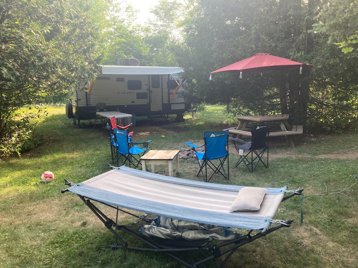 Acogedora caravana en un césped tranquilo con fogata, barbacoa, wifi, televisores inteligentes, cama tamaño queen, literas, aire acondicionado/calefacción, cocina y baño. Gatos, perros y pollos amistosos en el lugar. A solo 7 minutos de las tiendas y restaurantes de Salisbury: Gaxiola, Wrights Bakery, Pizza Mill, Tim Hortons y Green Pig Market. Cerca de la piscina, senderos, chapoteadero y acceso a la autopista para explorar joyas de NB como Hopewell Rocks y Fundy. ¡Te esperan comodidad, personalidad y aventura!