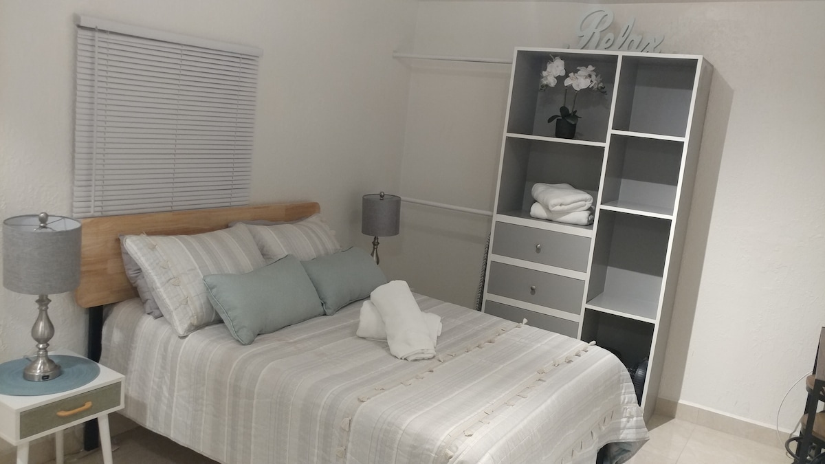 A 2 minutos de Palacio Municipal, 3 min. Garita Internacional, 10 min. aeropuerto (en vehículo). Espacio privado, seguro e independiente. Departamento completo de 1 recamara con cocina y baño privado. Incluye roku TV, internet, comedor y cocina equipada con estufa, refrigerador, cafetera y microondas.