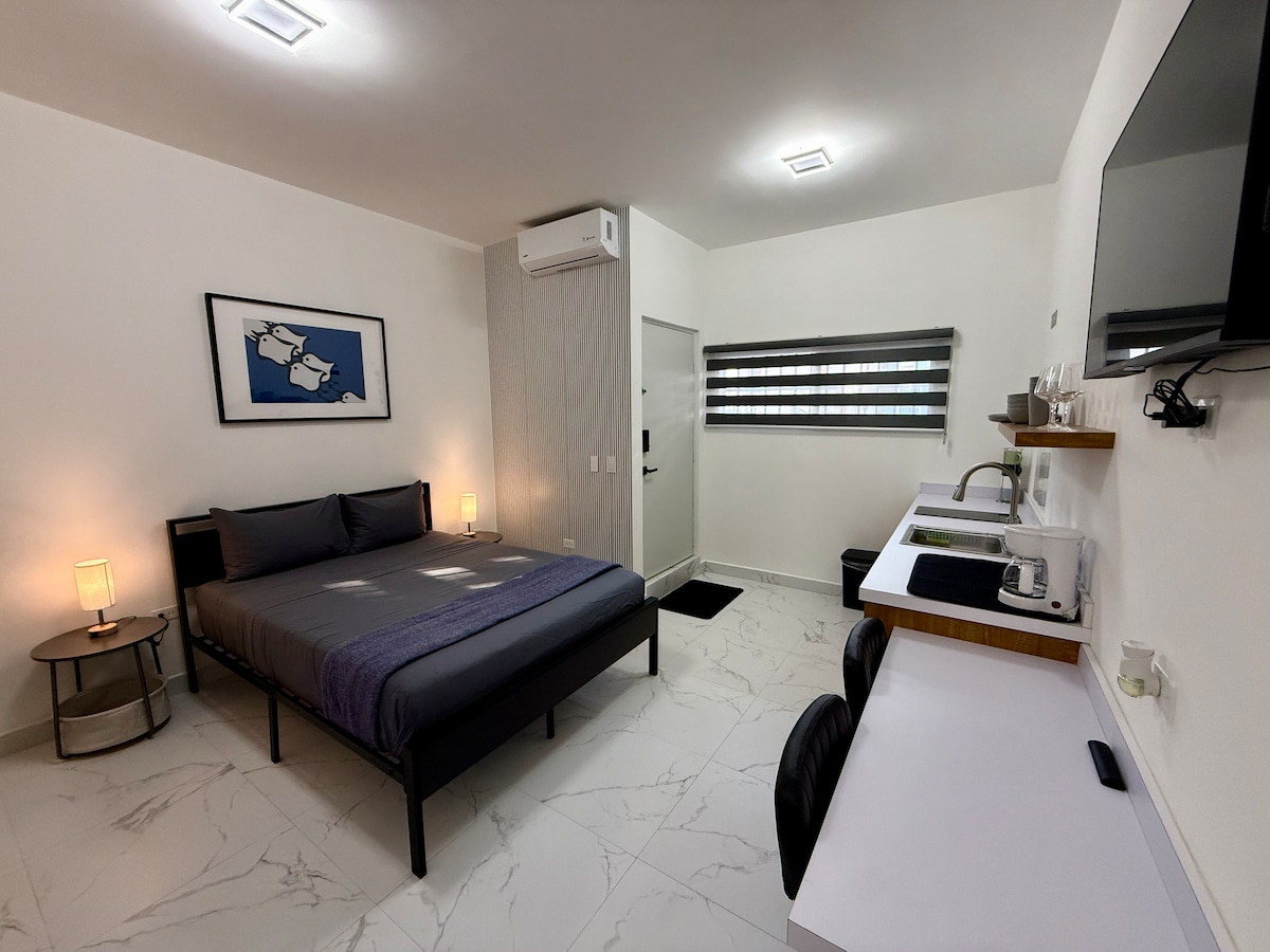 Disfruta de una experiencia con estilo en este alojamiento céntrico. Un Estudio Ubicado en la zona Dorada de Tijuana en el piso 22, cruzando la calle tendrás una plaza comercial con restaurantes, bancos, cinema, Walmart. A 300 metros del Casino Caliente y 200 metros del estadio de Futbol de los Xolos. A 10 minutos de la garita de San Isidro en la mejor zona de Tijuana.