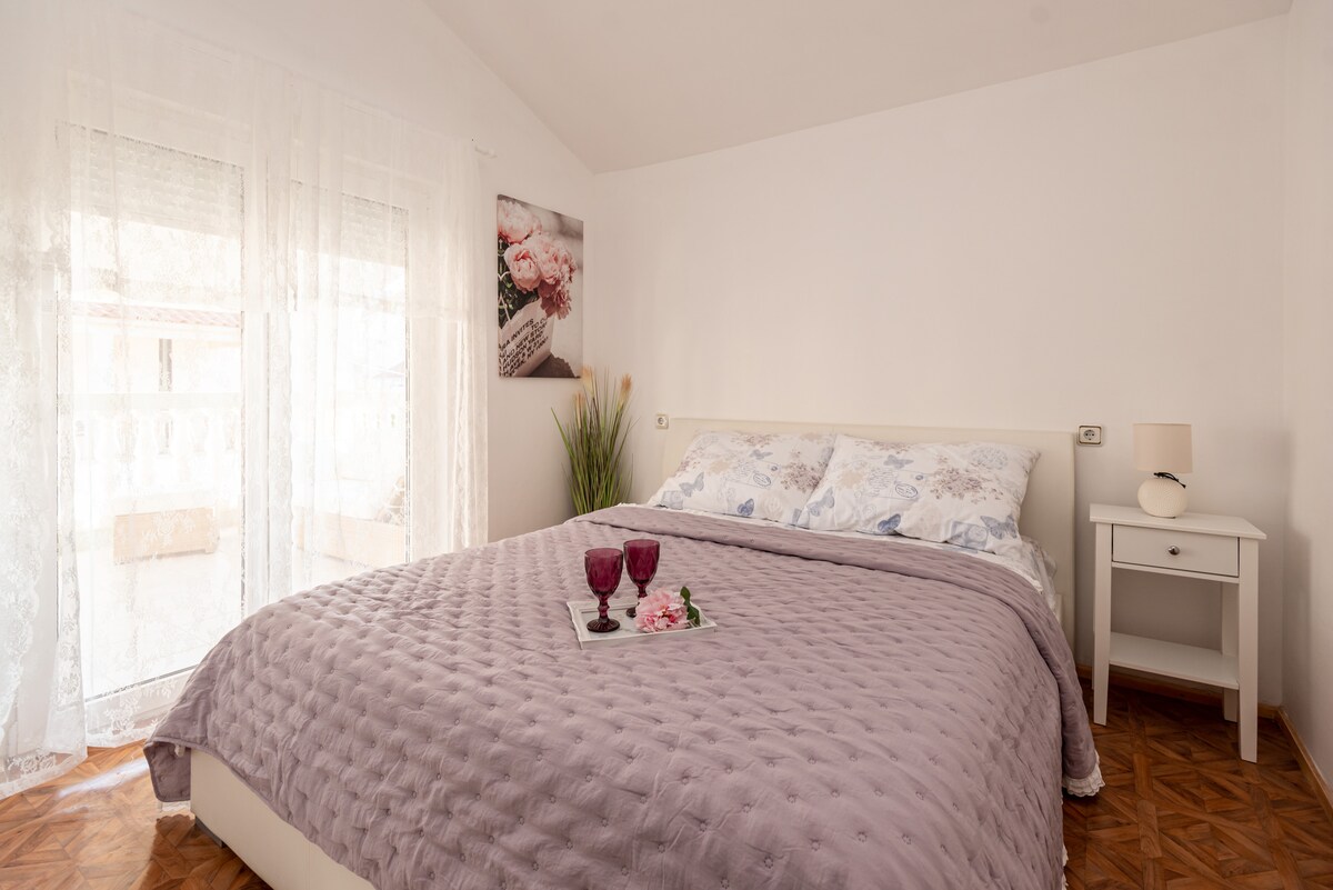 Este apartamento para dos huéspedes se encuentra fuera del centro de la ciudad de Biograd, en una zona tranquila y silenciosa que está cerca de la carretera principal. Está a dos minutos del centro en coche o a 20 minutos a pie. El alojamiento cuenta con un amplio patio con plaza de aparcamiento gratuita y una barbacoa. Se admiten mascotas.
