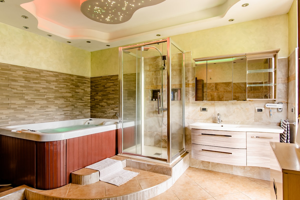 En el corazón del edificio histórico, puedes disfrutar del placer de alojarte en la habitación con una minipiscina para tu uso exclusivo, con cuatro estaciones de hidromasaje y una cascada para masajes en el cuello. El jacuzzi se puede utilizar como desees de 9:00 a. m. a 10:00 p. m., y se encuentra dentro de la habitación. La temperatura del agua se mantiene entre aproximadamente 30 °C y 34 °C, desinfectada con cloro para un baño seguro. Además, la habitación está equipada con un sistema de ventilación.