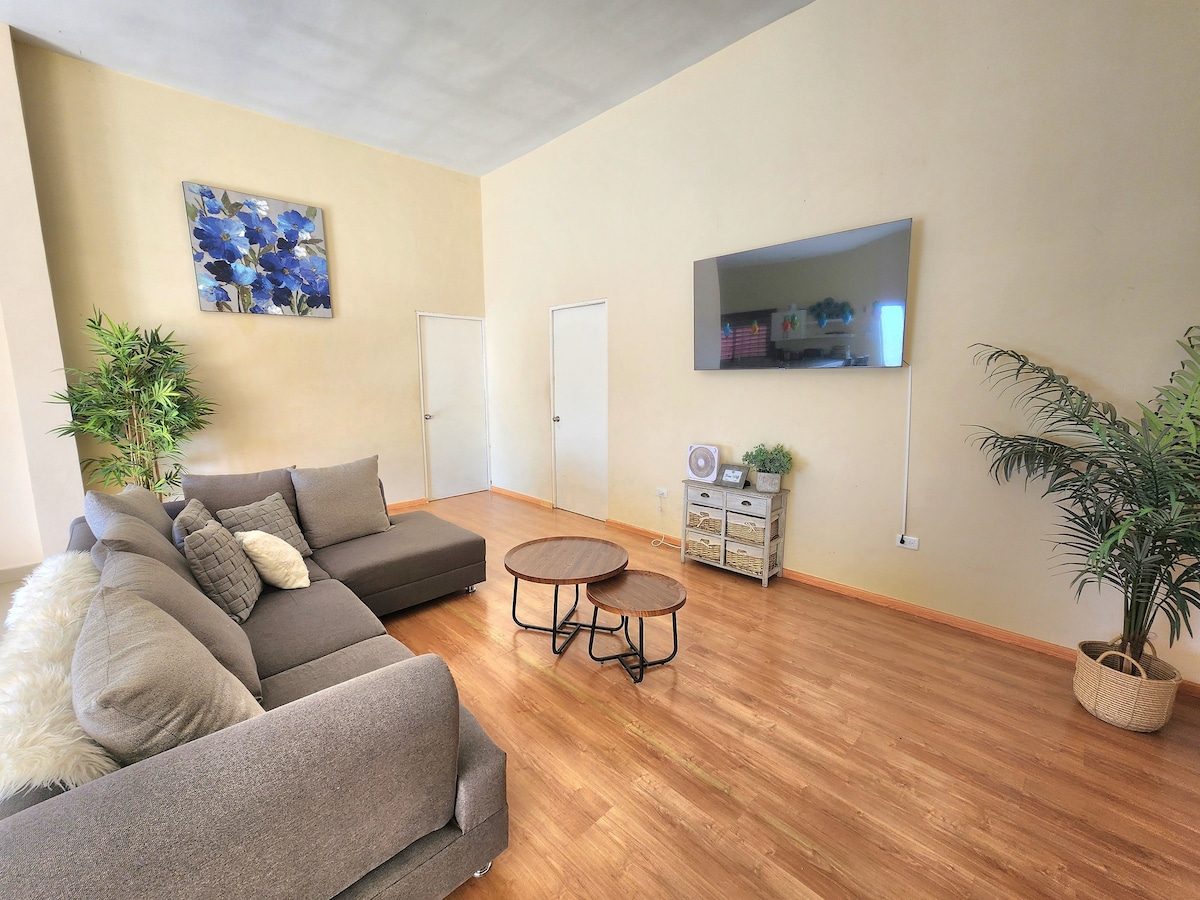 Tu familia estará cerca de todo, centros comerciales, zona industrial,súper etc. tu hospedaje en este alojamiento será tranquilo, y súper seguro. Si necesitas que vaya por ti a el aeropuerto también tengo el servicio por $200 pesos en una camioneta para 4 personas. Solo del aeropuerto a la casa o viceversa. Horario disponible de 4 a 9 pm.