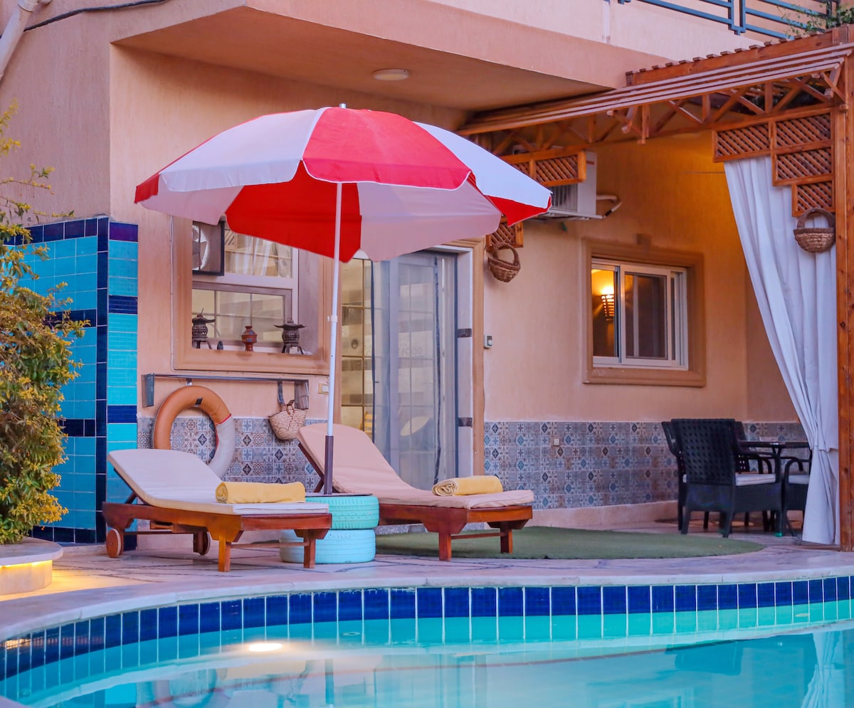 Royal Blue Villa 800 m2 de jardín, con su propia piscina privada y jacuzzi. Podemos ofrecerte unas vacaciones completas empezando con el traslado desde el aeropuerto, excursiones, las tenemos todas, viaje privado a El Cairo, Luxor. ¿Nadar con los delfines hasta la isla Orange? La villa realmente tiene todo lo que necesitas para pasar unas vacaciones fantásticas. La villa tiene 3 dormitorios y tiene capacidad para 8 personas (litera extra). Hay un parque infantil, mesa de billar, mesa de ping pong y mesa de hockey de aire.