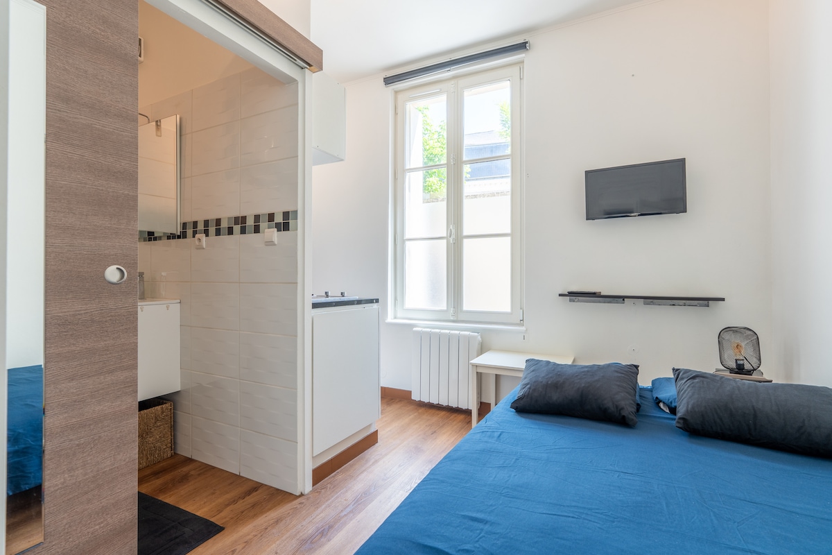 Centro de Tours, barrio de Febvotte, encantador tipo 1 independiente de 29 m². Situado en una calle muy tranquila y con un patio privado. Todo confort, zona de estar, mesa de comedor, pequeño escritorio, WIFI, TV. Cocina independiente con placas de inducción, nevera, horno, cafetera Nespresso. Cuarto de baño con ducha e inodoro. A 20 minutos a pie del centro histórico. Tranvía a 10 minutos, parada de autobús a 5 minutos. Suministro de ropa de cama. El alojamiento debe dejarse limpio.
