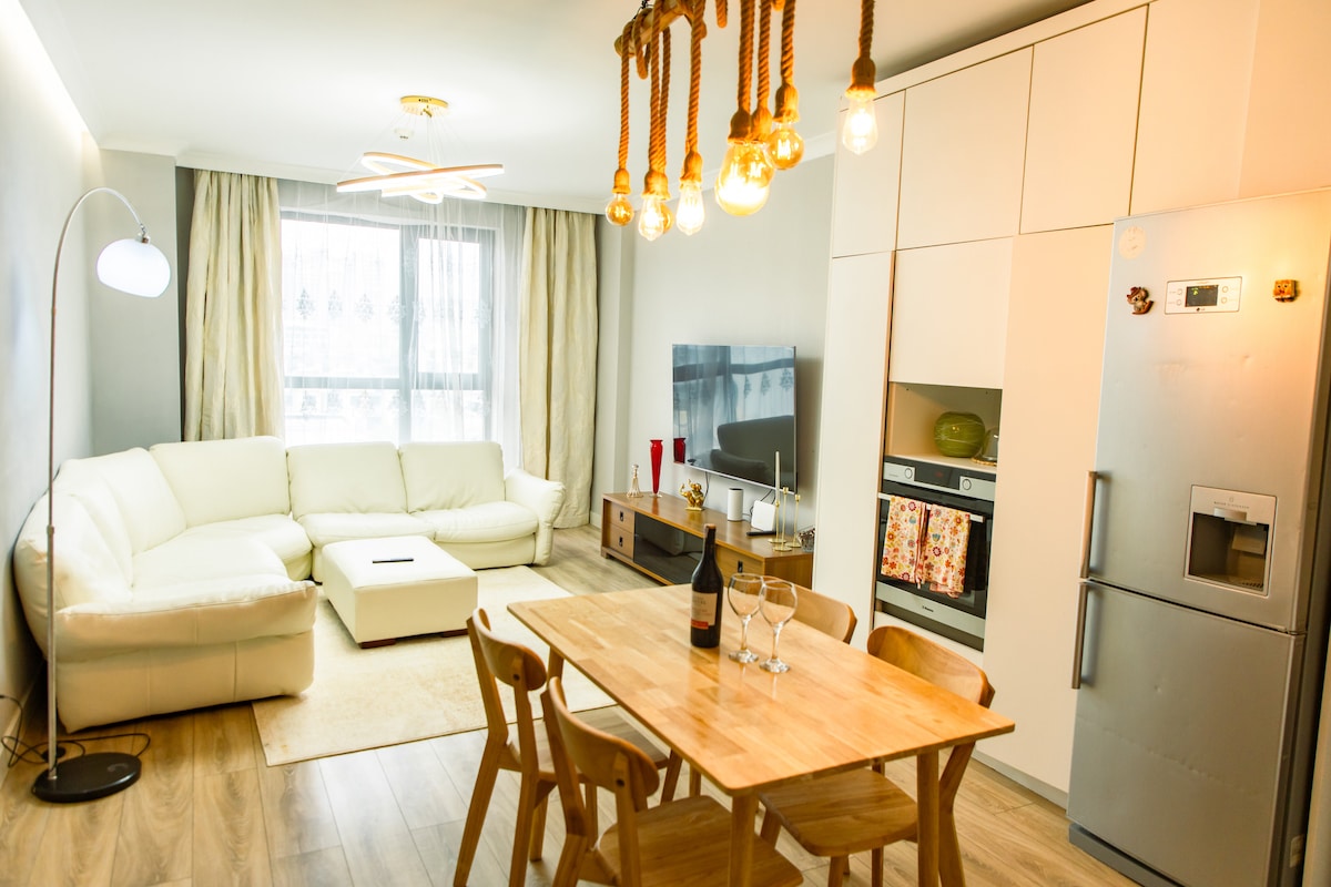 Welcome to our comfortable apartment located in the heart of the city, right next to the Embassy of the United States of America and alongside the tranquil river. This fully furnished and equipped apartment offers everything you need for a relaxing stay. Relax in the spacious living room with a 65-inch Smart TV, or prepare meals in the fully equipped kitchen. The bedroom features a luxurious super king-size bed for a restful night's sleep.