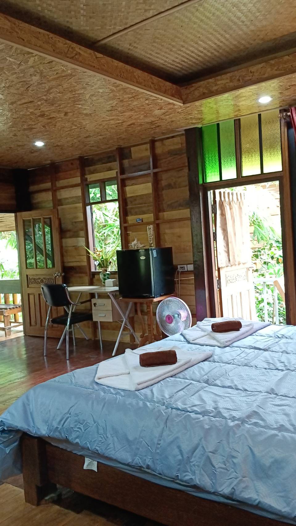 Nuestro alojamiento se encuentra en el municipio del distrito de Khlongthom, provincia de Krabi. Está cerca de restaurantes, tiendas de conveniencia, grandes almacenes, mercados frescos y muchas atracciones turísticas de la zona. Somos una pequeña casa familiar, una casa de jardín en un jardín de palmeras en una zona de 7 rai (aproximadamente 2,8 acres), que está junto a un canal natural. Está completamente vallado. Puedes traer a tus mascotas para que corran por nuestro jardín y se sienten junto al canal.
