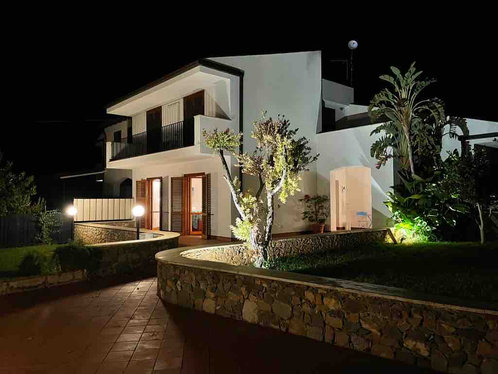 A 170 metros del mar, entre la almadraba y la Reserva Natural de Zingaro, se alternan varias calas, planta única y equipada con mosquiteras. El jardín, con ducha exterior, se extiende alrededor de toda la casa, con una cómoda barbacoa con fregadero, tumbonas, sofás y mesas al aire libre donde se puede almorzar, cenar o pasar agradables veladas. Abajo, en el mar, dos calas de uso exclusivo de la residencia, accesibles por pasajes de piedra, en el cercano Baglio, bar, estanco, pub, restaurantes, pizzerías, mercado, cajero automático.