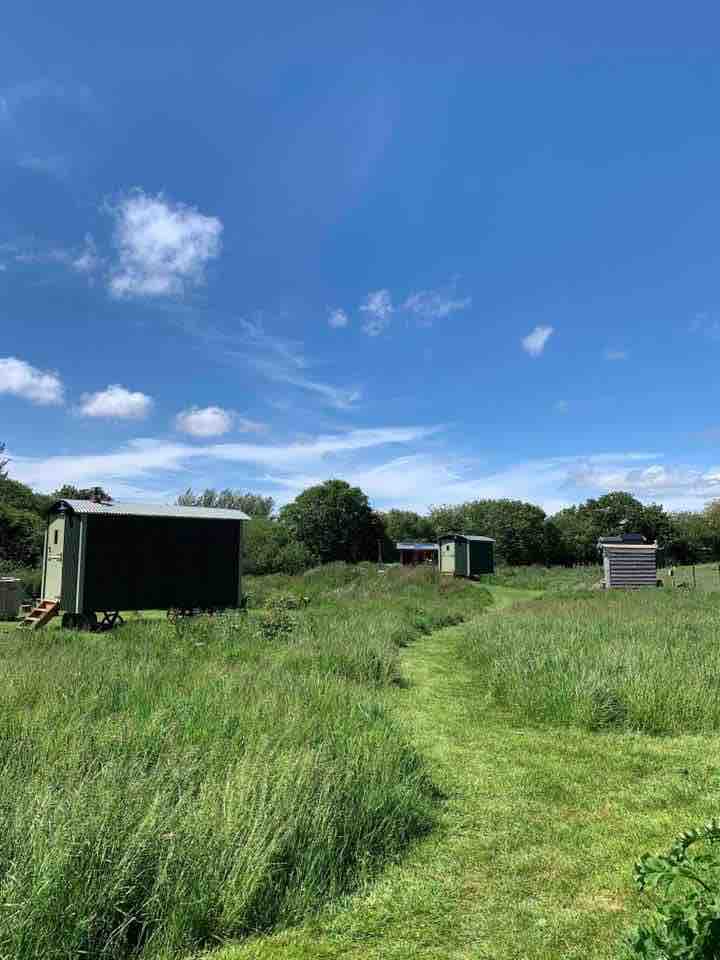 Impresionantes carromatos de pastor sin conexión a la red con estufa de leña para mantenerte cómodo y caliente, y una cómoda cama doble y sofá. Cada cabaña tiene su propia «cabaña cocina» con todo lo que necesitas en una cocina básica de camping. Junto a cada cabaña está tu propio jacuzzi de leña. Un inodoro de compostaje y una ducha de gas se comparten entre las dos cabañas. Rural, romántico, entorno campestre, ideal para parejas o el único viajero que desee relajarse y recargar energías. *Ten en cuenta que hay un cargo adicional por los jacuzzis*