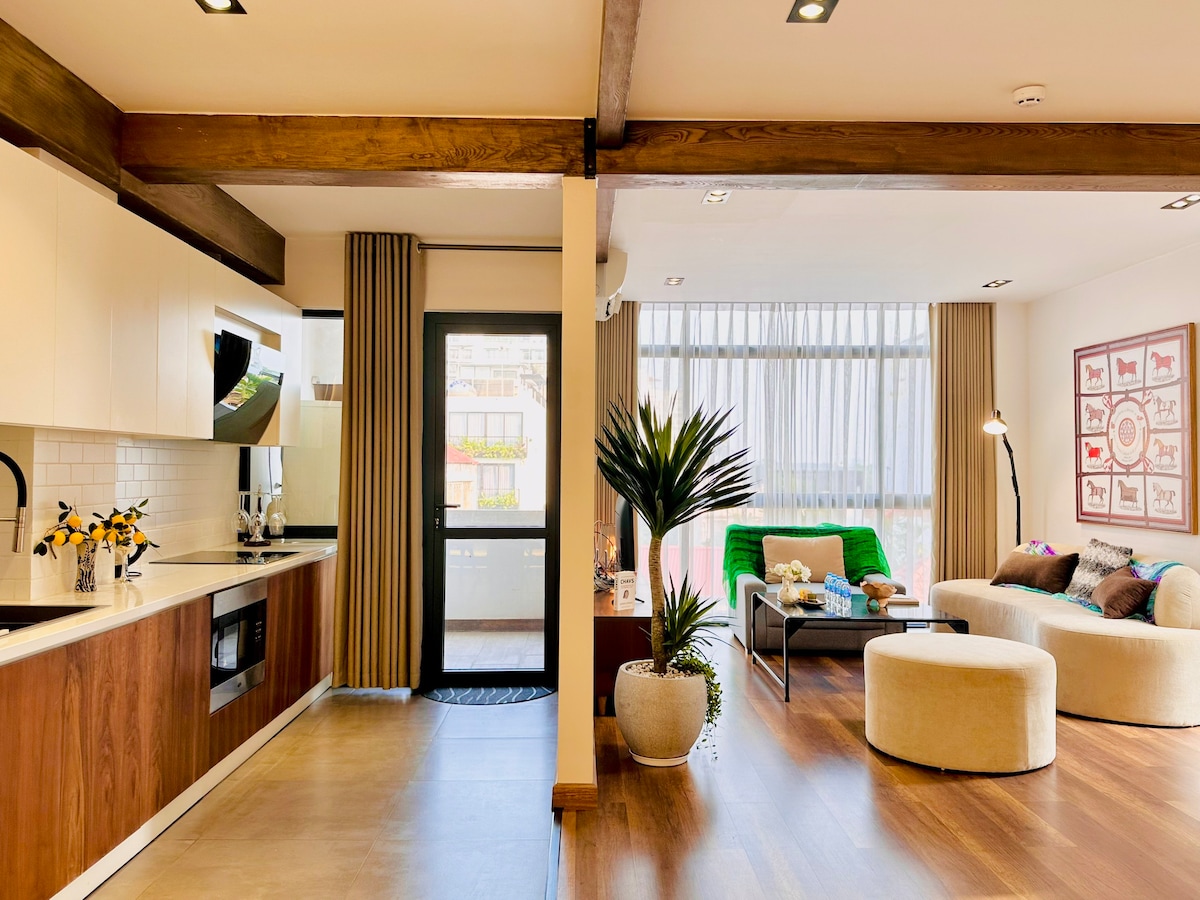 Newly built building which is suitable for short to longterm rent, having a fully function private laundry plus kitchen and shared garden space for rental guests only. The house is located in the heart of Ba Dinh district, fully airy with big window and only takes 3 minutes walking to the West Lake, 15 mins to the Old Quarter via Grab/taxi (approx. $2-3) and Lotte Lieu Giai is 15 minute walk or a 3-minute taxi, or we also offer free airport drop off service for guests who stay more than 3 nights