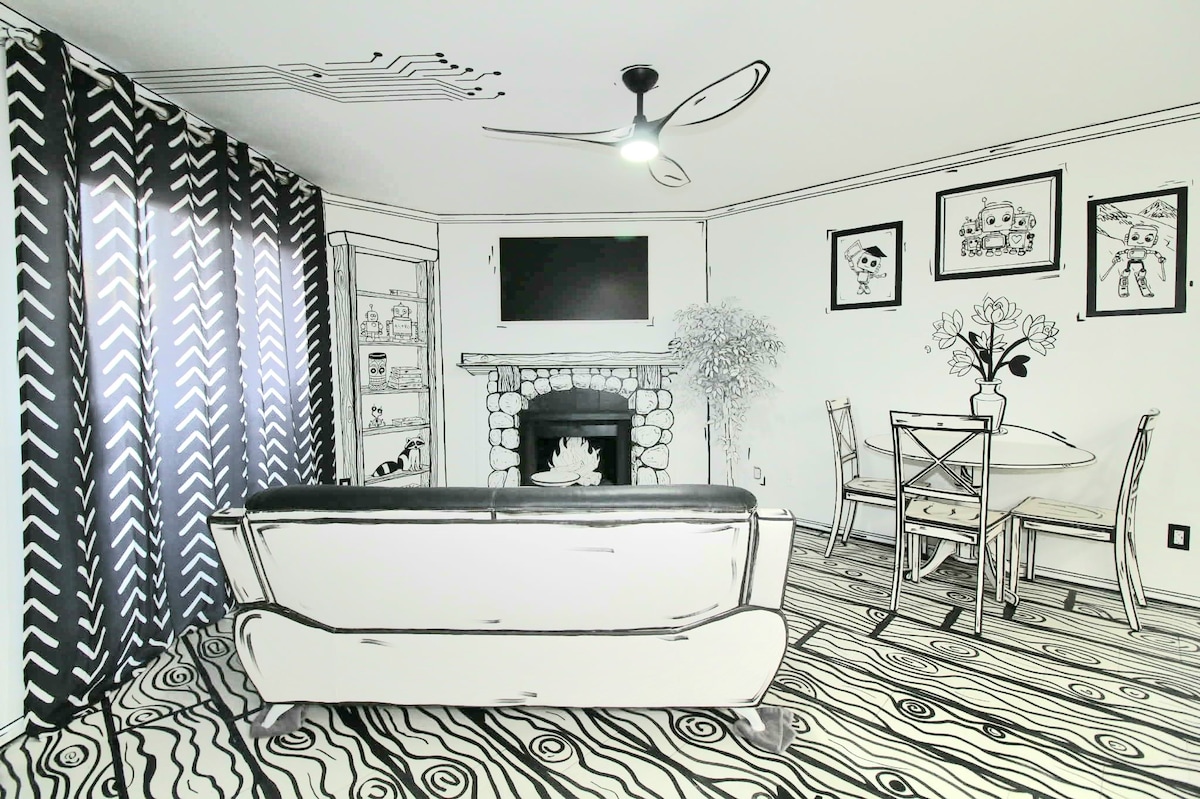 ¡Perfecto para familiares que visitan a la familia! Diseñado para ofrecer una comodidad de primer nivel, en un barrio seguro y tranquilo, para que puedas relajarte con estilo. Recientemente remodelado a 350 pies cuadrados, el loft se adapta perfectamente a viajeros solteros, parejas y mascotas que pueden jugar en el patio trasero compartido totalmente vallado. ¡El trabajo a distancia aquí es muy fácil! ¡Utiliza el wifi de alta velocidad, un gran escritorio incorporado y una pequeña cocina equipada con café! ¡Además, sube tu relajación al siguiente nivel reservando el servicio de jacuzzi a 20 $/noche!